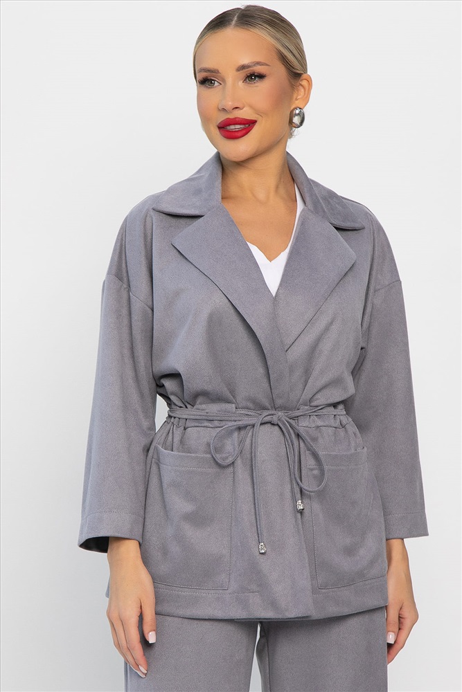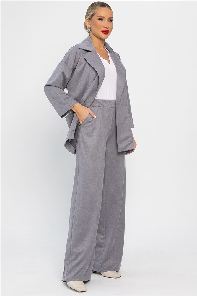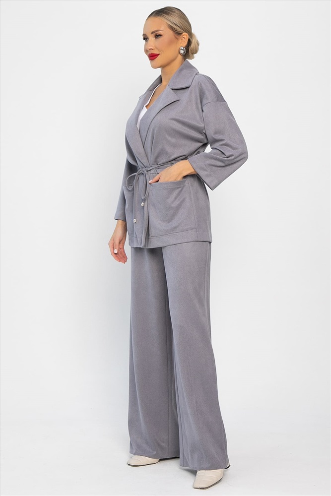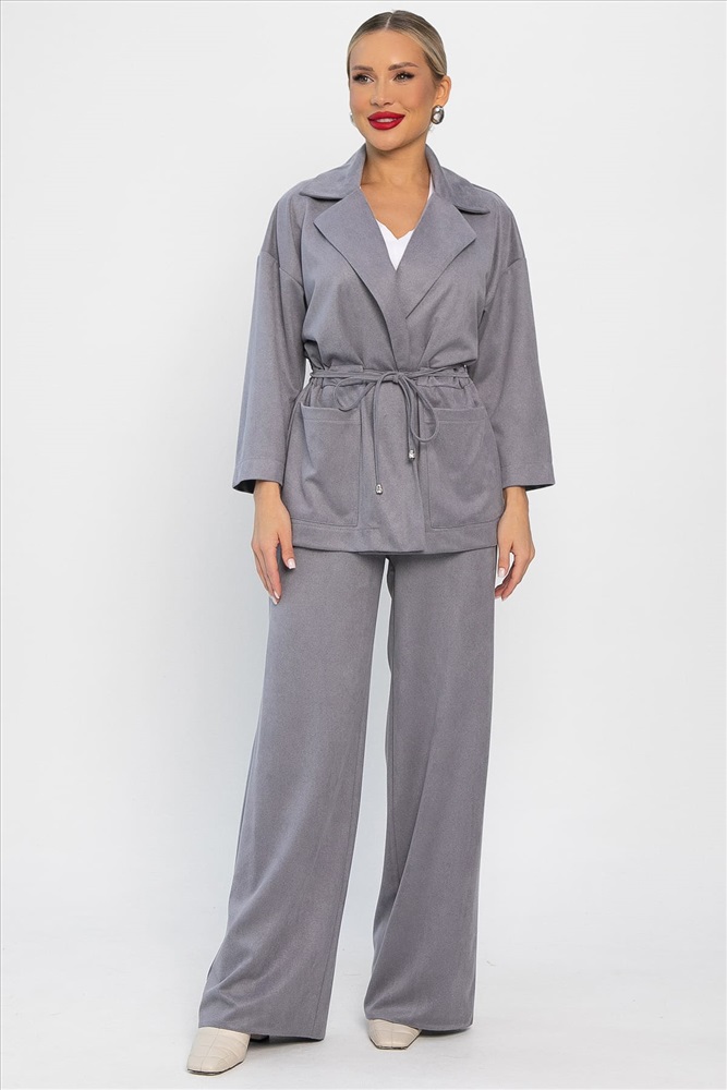 Стильный и удобный брючный костюм из спандекса — это то, что вам нужно! Его современный и лаконичный дизайн позволит вам выглядеть элегантно и уверенно в любой ситуации. Пиджак оснащен кулиской на талии. Брюки оснащены удобной резинкой по талии. Ощутите неповторимость и совершенство в этом костюме!