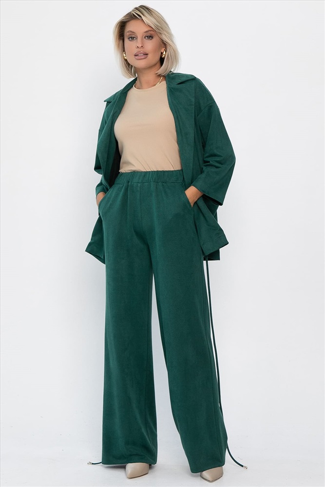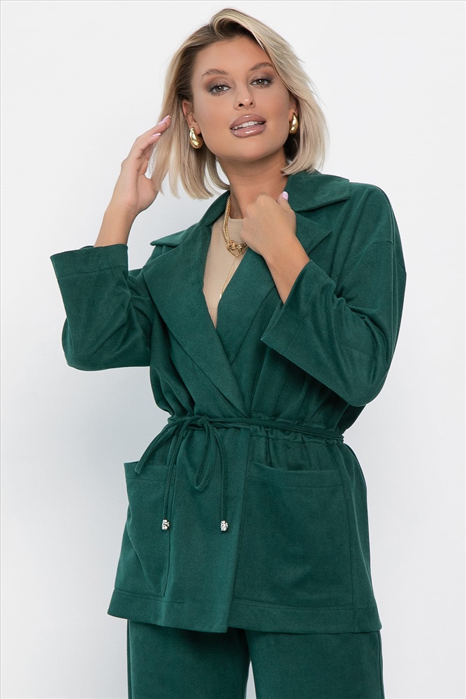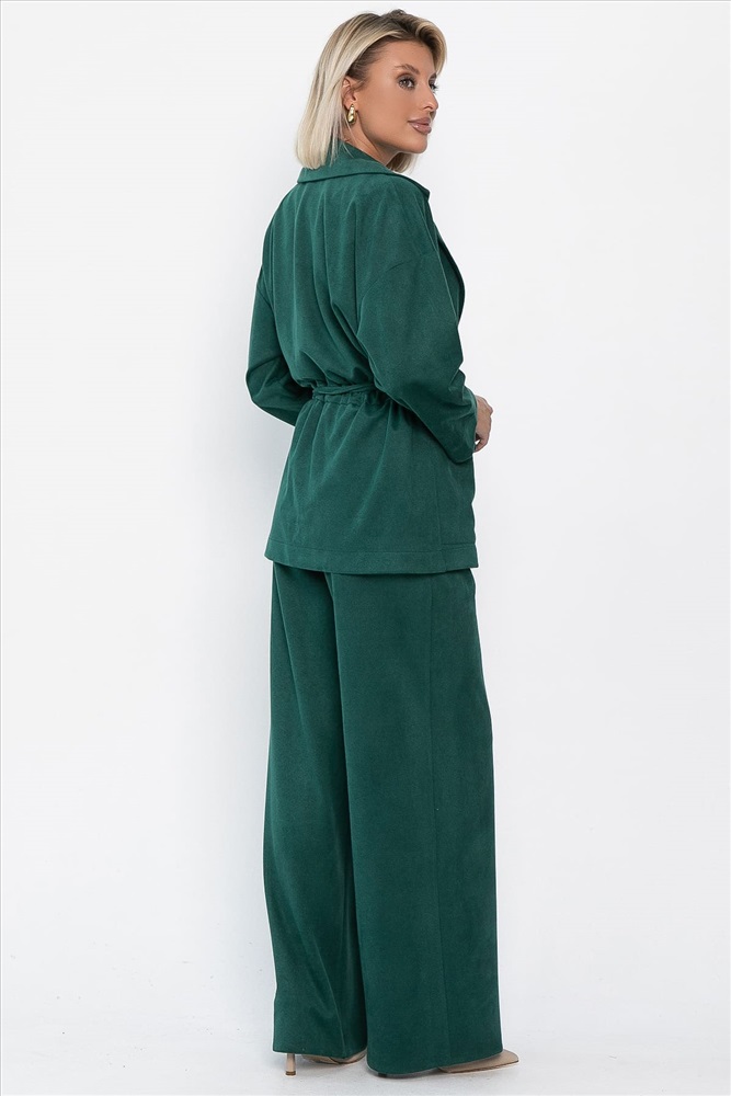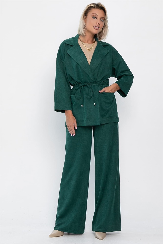 Стильный и удобный брючный костюм из спандекса — это то, что вам нужно! Его современный и лаконичный дизайн позволит вам выглядеть элегантно и уверенно в любой ситуации. Пиджак оснащен кулиской на талии. Брюки оснащены удобной резинкой по талии. Ощутите неповторимость и совершенство в этом костюме!