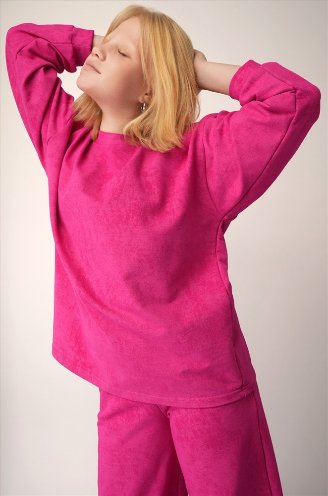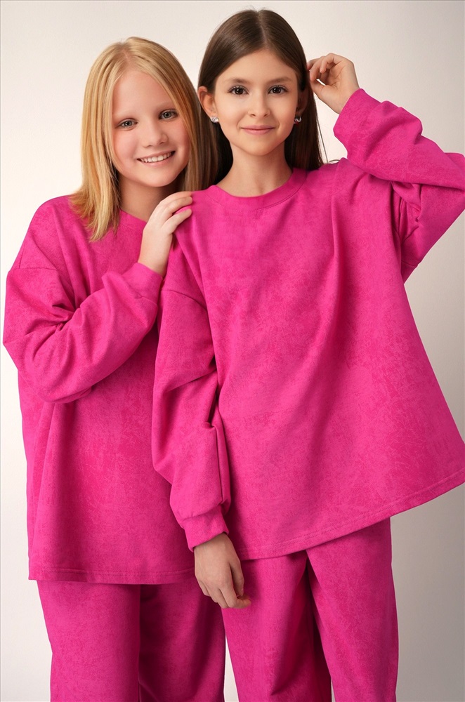 Детский костюм для девочки и девочки подростка с вареным эффектом — стиль без усилий.Глубокий тон и свободный силуэт создают выразительный повседневный образ, а плотный футер даёт ощущение уюта в прохладную погоду.