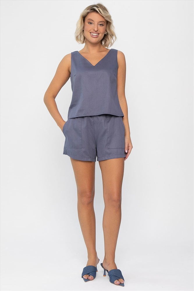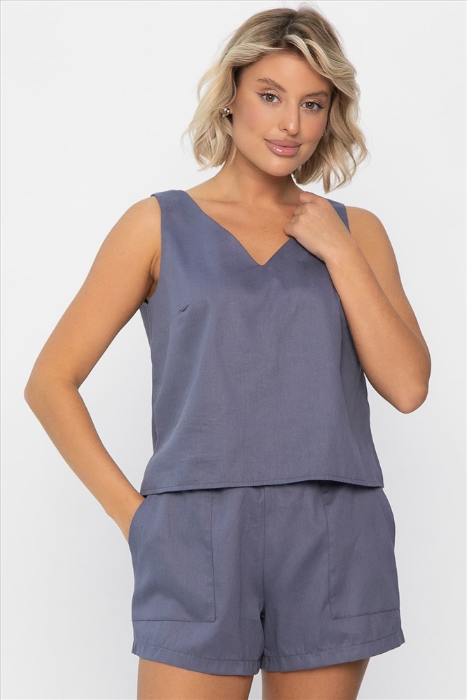 Домашний костюм с шортами и топом — идеальный выбор для комфортного досуга. Изготовленный из 100% хлопка, он приятно прилегает к телу, обеспечивая мягкость и воздухопроницаемость. Этот минималистичный комплект не имеет замков и пуговиц, что позволяет легко и быстро переодеваться. Сделайте свою жизнь уютнее с нашим домашним женским костюмом!