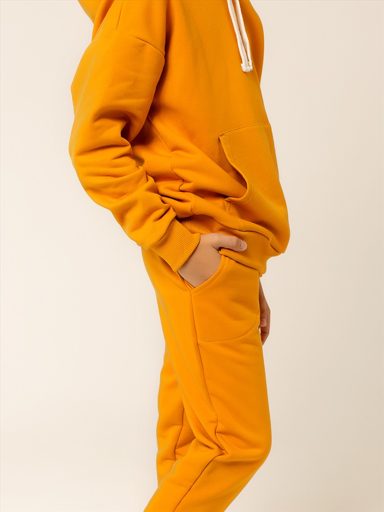 Детский костюм с начёсом из футера 3-х нитки кроя ОВЕРСАЙЗ невероятно актуальный и отражает все модные тенденции настоящего времени. Верх изделия - детское худи оверсайз, которое имеет удобный карман-кенгуру спереди и теплый капюшон с подкладкой для защиты ушек от ветра и холода. Эластичный нижний край и манжеты делают худи максимально удобным, мягкий материал с начесом дарит тепло и уют. Брюки - джоггеры с боковыми накладными карманами невероятно удобные и мягкие. Эластичные пояс со шнуром и манжеты обеспечивают оптимальный комфорт и удобную посадку брюк на теле.