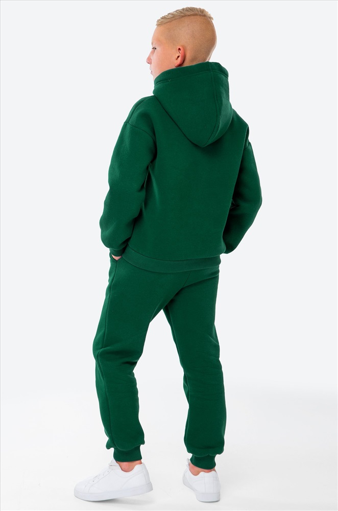 Теплый детский спортивный костюм с начесом для мальчиков и мальчиков-подростков выполнен из натурального 100% хлопка. Удобный капюшон, карманы в брюках, крой оверсайз делают костюм изумрудного цвета невероятно уютным. Зимний утепленный костюм двойка создан для стильных повседневных образов.