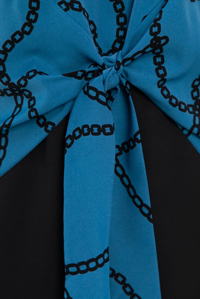 Стильный брючный костюм — это идеальное сочетание элегантности, удобства и функциональности для повседневных и деловых ситуаций. Блузка синего цвета с оригинальным принтом добавляет яркости образу и подчеркивает вашу индивидуальность. Однотонные черные брюки с резинкой по талии и карманами по бокам создают завершенный и стильный вид. Этот комплект поможет вам чувствовать себя уверенно и комфортно в любой день.