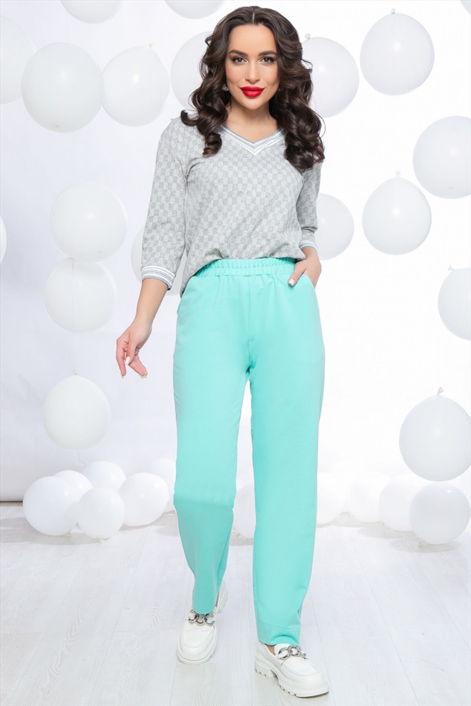 Артикул:К5474. Ткань:трикотаж. Состав:95% хлопок, 5% эластан. Цвет:серый, ментол. Вид застежки:без застёжки. Силуэт:свободный. Карманы:вбоковых швах брюк. Длина изделия джемпера по спинке:44/ 60 см,46/ 61 см, 48/ 63 см, 50/ 64 см, 52/66 см, 54/ 67 см, 56/ 69 см. Длина брюк с учётом резинки:44/ 100 см, 46-101,48-102,50-103,50-104,52-105,54-106,56-107. Рост модели:167 см. Элегантный брючный костюм добавит Вашему имиджу кокетства, а яркие цвета подчеркнут изящества и образ получится более эффектным и стильным. Данное изделиеподойдет для комфортного повседневного использования. По переду есть накладные карманы.Комфортные широкие брюки по талии на резинке. Костюм будет отлично сочетаться со светлыми кедами. Уход за изделием: бережная стирка до 30 градусов, нельзя отбеливать, деликатный отжим, гладить при t не более 110 С, гладить с изнанки. *Допуск отклонения длины при массовом производстве 1-3 см является нормой.