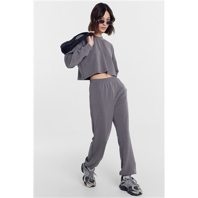 ID товара: 1001491 Состав: 50% Модал; 44% Полиэстер; 6% Эластан Сезон: Весна/Лето Рукав: длинные Вид застежки: Без застежки Крой брючин: Прямой Тип карманов: В шве Декоративные элементы: Без элементов Утеплитель: Без утепления Покрой: свободный Уход: Деликатная стирка при 30 градусах Модель брюк: Джоггеры Фактура материала: Интерлок Страна бренда: Беларусь Страна производства: Белоруссия Комплект женский (джемпер+брюки) из интерлока свободного силуэта. Джемпер женский свободного силуэта из трикотажного полотна интерлок. Горловина круглой формы, обтачка из основного полотна. По горловине проложена отделочная строчка. Плечо спущено, пройма углублена, рукав втачной длинный. По низу рукава отрезная манжета из основного полотна. Джемпер укорочен. Брюки свободного силуэта, с высокой посадкой. Пояс отрезной с эластичной тесьмой внутри. По поясу проложены отделочные строчки. В боковых швах обработаны карманы. Нижние срезы обработаны швом вподгибку с эластичной тесьмой внутри. Комментарии к товару