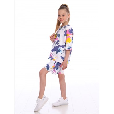 Невероятно нежный и стильный детский костюм на лето. Футболка с удлиненным рукавом и О-образной горловиной. Шорты широкие на резинке, длина до колена, по бокам удобные кармашки. Материал приятный на ощупь. Прекрасно подойдет для летних прогулок и спортивного отдыха.