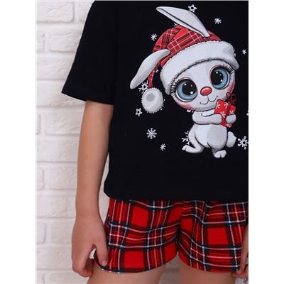 Новогодний домашний комплект для мальчиков и девочек. Детская футболка прямого силуэта, втачной короткий рукав. Шорты в клетку классического кроя, пояс на резинке. Костюм с символом прдестоящего года подойдет также в качестве пижамы.