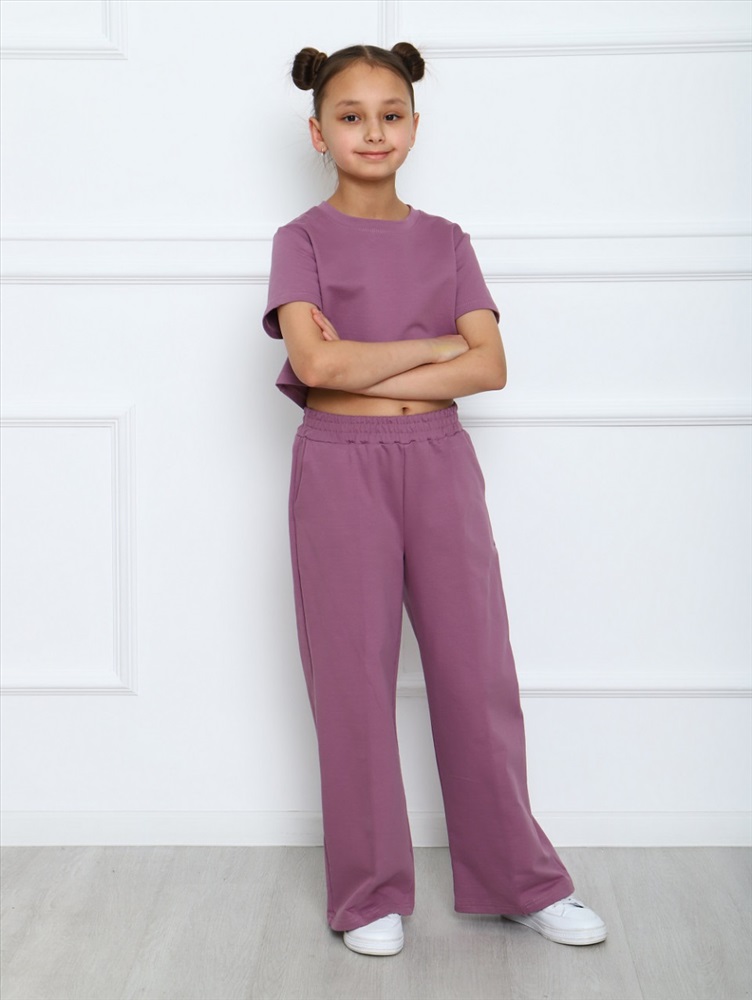 Состав: хлопок 95%, лайкра 5% Материал: Футер Представляем вам прекрасный спортивный костюм для девочек, который сочетает в себе комфорт, стиль и легкость. Этот костюм состоит из брюк на резинке и укороченой футболки, идеально подходящих для активных занятий и повседневного использования. Брюки в этом костюме имеют свободный и комфортный крой, что позволяет свободно двигаться и чувствовать себя комфортно во время физических упражнений. Они оснащены эластичной резинкой, которая обеспечивает надежную посадку и не сковывает движения. Брюки выполнены из легкого материала, который обеспечивает воздухопроницаемость и комфорт даже во время интенсивных тренировок. Костюм имеет свободный крой, что добавляет комфорта и позволяет свободно двигаться. Костюм выполнен в однотонном цвете, что делает его универсальным и легко сочетаемым с другой одеждой. Этот спортивный костюм идеально подходит для девочек, которые активно занимаются спортом или просто любят комфортную и стильную одежду. Он подходит как для тренировок, так и для повседневного ношения. Костюм можно легко сочетать с различными аксессуарами и обувью, чтобы создать уникальный и стильный образ. Независимо от того, где ваша девочка будет носить этот костюм, он обеспечит ей комфорт, свободу движений и стильный вид. Он выполнен из качественных материалов, которые гарантируют долговечность и удобство. Позвольте вашей девочке наслаждаться активными занятиями в этом прекрасном спортивном костюме. Рекомендована бережная стирка при температуре не выше 30 градусов, деликатный или ручной режим, вывернув изделие на изнаночную сторону. Ткань: Футер петля 2-х нитка пенье. Комментарии к товару