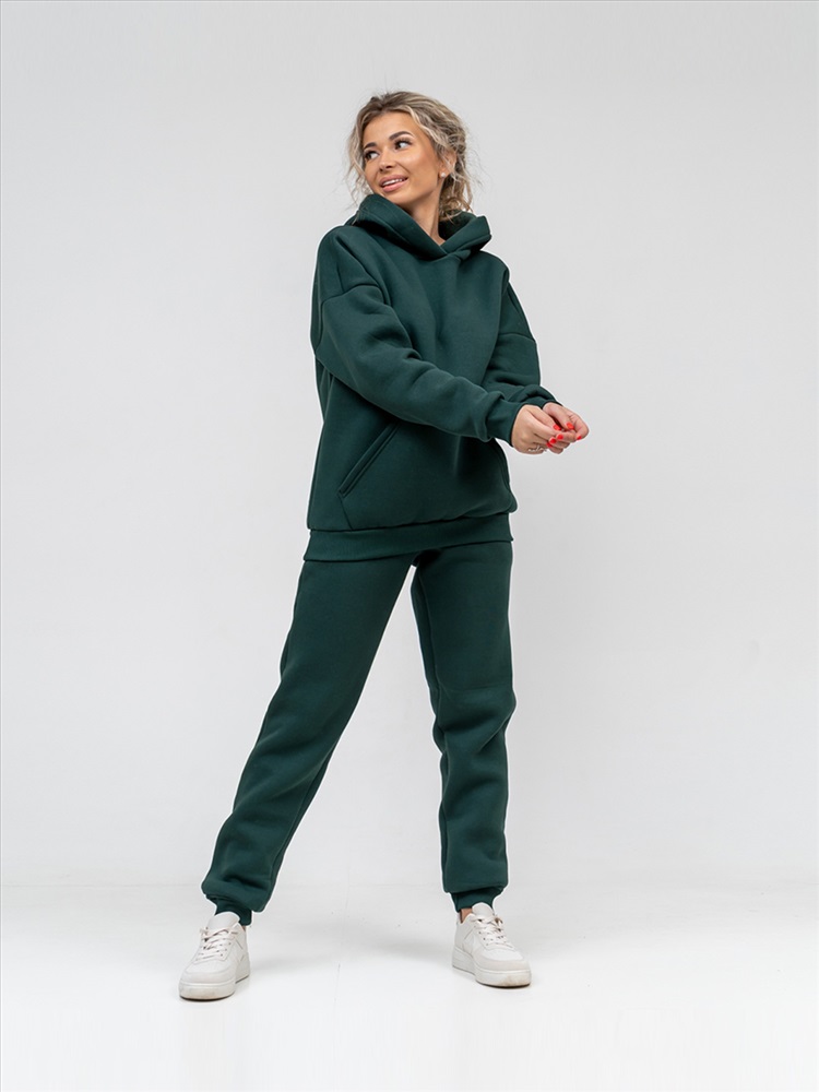 Женский трикотажный костюм из футера с начесом. Толстовка в стиле oversize со спущенной линией плеча и капюшоном. На полочке карман - кенгуру. Брюки полуприлегающего силуэта, с боковыми карманами с отрезным бочком. Отделка из ткани в рубчик, по низу толстовки, рукавам и по низу брюк. Костюм идеально подойдет для сезона осень-зима, в нем вы будете чувствовать себя комфортно в прохладную погоду. Модные тренды от бренда Текс-плюс.Ru придадут вашему образу неповторимость, а премиальное качество подарит незабываемое ощущение комфорта.