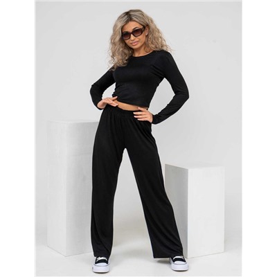 Вы уже купили себе брюки-трубы? Если нет, то наш костюм поможет быть Вам в тренде этого сезона! Брюки палаццо подходят для любого типа фигуры, скрывают ее недостатки и подчеркивают достоинства. Костюм из вискозы идеально подойдет для вечерних и повседневных образов, для прогулок и занятий спортом, а также в качестве костюма для дома. Брюки с широкими штанинами из трикотажной ткани очень удобны в качестве повседневной одежды, не сковывают движения, а укороченный лонгслив добавит гармоничности в образ.