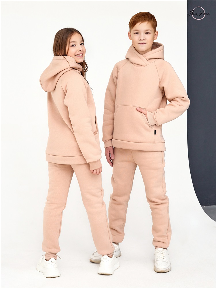 Демисезонный теплый спортивный костюм от бренда SOVAlina для подростков и родителей. Выполнен из футера 3х-нитки с начесом. Модель унисекс. Толстовка с капюшоном (без подклада) и карманом-кенгуру, брюки на резинке с эластичными манжетами. Утепленный костюм с мягким флисом идеальный вариант одежды на весну или осень, и как зимний костюм. Благодаря умеренному "оверсайз", отлично подойдет под жилетку или куртку. Возможно сбрасывание лишнего ворса начёса, которое является не дефектом ткани, а её особенностью, и полностью исчезает после нескольких стирок.
