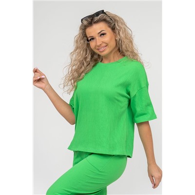 ID товара: 904143 Состав: 88% Хлопок; 10% Полиэстер; 2% Лайкра Сезон: Весна/Лето Длина: Средняя Фасон: Свободный крой Рукав: короткие Крой брючин: Прямой Тип карманов: В боковом шве Основная ткань: Хлопок Стиль: Повседневный Вид ткани: Жатка Страна бренда: Россия Страна производства: Россия Модный стильный костюм - идеальное решение для тех, кто ищет лёгкую и красивую одежду на каждый день. Костюм, футболка и брюки, выполнен из кулирки гипе жатка компакт. Жатка - это ткань с мятой структурой, декоративными заломами и складками. Имеет много положительных качеств: хорошо тянется, упругая, красивая текстура, неприхотливая в уходе, прочная, износостойкая, не мнётся, не нуждается в глажке и приятная к телу. Футболка выполнена со спущенным рукавом, отстроченной обтачкой по горловине и двумя небольшими разрезами по бокам. На брюках имеется два вместительных боковых кармана и пояс, обработанный на специализированной поясной машине. Данная модель костюма очень удобна в качестве повседневной одежды, а универсальный фасон хорошо скроет недостатки и подчеркнет достоинства фигуры. Свободный крой комплекта двойки не сковывает движения, что делает его очень удобным в носке, резинка не перекручивается, а высокая посадка брюк - палаццо даёт ощущение комфорта. Такой костюм можно использовать как в качестве костюма для фитнеса, так и как вариант домашнего костюма, в нем также можно поехать на дачу или отправиться на вечернюю прогулку. Однотонный дизайн летнего брючного костюма без принта, надписей и декоративных элементов будет гармонировать с любым стилем одежды, а дополнить образ с модным костюмчиком можно любимыми аксессуарами и украшениями. Свободную футболку и брючки можно носить как вместе, так и отдельно. Футболку с коротким рукавом и разрезами по бокам можно легко сочетать с джинсами, юбками и шортами. К брюкам с карманами можно также подобрать любой верх. Образ с костюмом можно дополнить кроссовками, кедами или туфлями. Мягкий, прочный, хлопковый материал не дает усадку, не теряет форму после стирки и не линяет, его можно стирать в режиме бережной стирки при 30 градусах. Также данный трикотажный костюм не скатывается и не вытягивается за счет небольшого количества полиэстера в составе. Такой однотонный костюм с широкими брюками подойдет для разной возрастной категории. Он идеально подойдет для беременных и мам с детьми. Хорошо сядет на высоких и невысоких представительницах прекрасного пола всех возрастов. Такой универсальный прогулочный женский костюм станет отличным подарочным вариантом, его можно подарить маме, дочери, жене, бабушке, подруге или порадовать себя любимую даже без повода. Наш костюм благодаря своей практичности и лаконичному дизайну будет служить Вам долгие годы. Ориентируясь по таблице замеров, обратите внимание, что замеры длины р Комментарии к товару