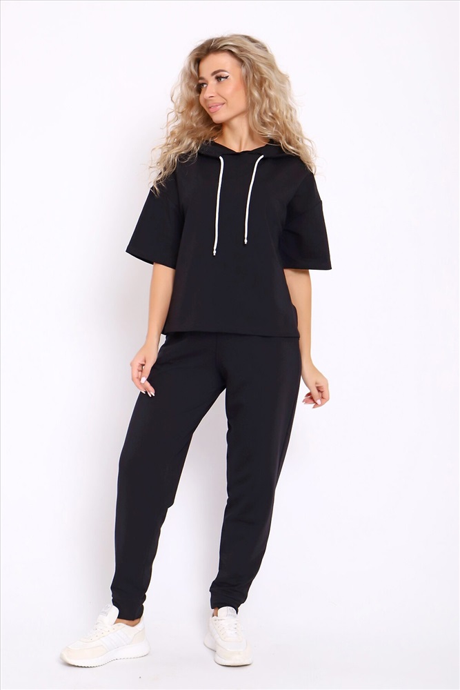 Женский костюм выполнен из футера высокого качества с хлопком и небольшим добавлением полиэстера и лайкры, что позволяет изделию не скатываться и оставлять идеальный внешний вид на долгое время. Костюм состоит из толстовки и брюк. Толстовка с капюшоном и шнурком. Линия плеча спущена, рукав укороченный, по бокам имеются небольшие разрезы. Брюки представлены с вместительными боковыми карманами. Манжеты брюк выполнены из основного материала, а пояс на специализированной поясной машине, что делает швы ровными и качественными. Свободный крой прекрасно будет смотреться на дамах с любыми формами. Костюм такого плана представлен в широкой размерной сетке, что позволяет выбрать его как девушке, так и женщине. Однотонный костюм модных расцветок будет удачным выбором для поездок в отпуск, на пикник, для школы, для активного отдыха и прогулок по городу. Будет гармонично сочетаться как с кроссовками, так и с туфлями, балетками или босоножками. Используя эту модель в качестве домашнего костюма, Вы поймёте, что это именно тот самый идеальный вариант, в котором будете себя чувствовать удобно, комфортно и современно. Костюм с брюками - это настоящая находка для тех, кто ценит свою индивидуальность! Ориентируясь по таблице замеров, обратите внимание, что замеры длины рукава проводились от точки основания шеи.