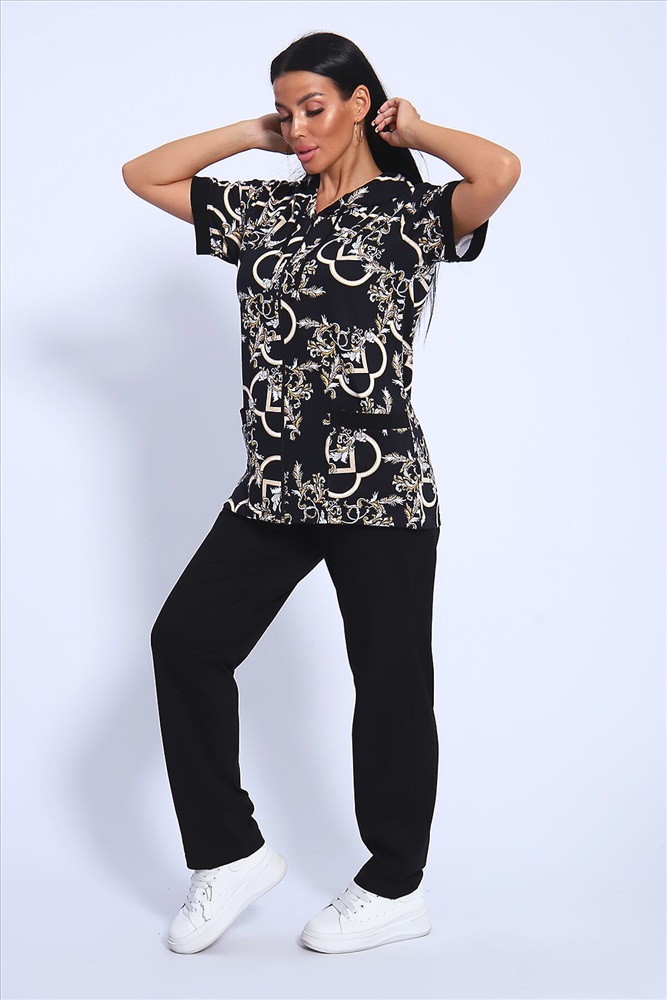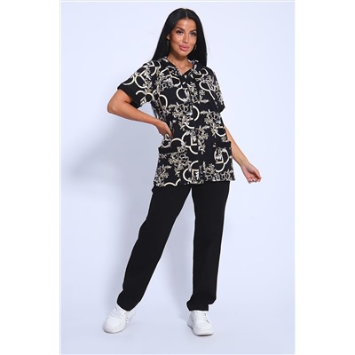 ID товара: 1037010 Состав: Хлопок 100% Сезон: Демисезон Длина: Полная Фасон: Свободный Рукав: короткие Вид застежки: Молния Крой брючин: Прямой Рисунок: цепи Тип карманов: Накладные Декоративные элементы: С капюшоном Основная ткань: Хлопок Стиль: Спортивный Вид ткани: Кулирка Страна бренда: Россия Страна производства: Россия Стильный женский костюм из легкой дышащей ткани. Сшит из мягкого трикотажного полотна высокого качества. Основной изюминкой костюма является сочетание абстрактного рисунка кофты и однотонного полотна брюк, в цвет основному тону изделия. Для вашего удобства кофта застегивается на молнию, что позволяет регулировать глубину горловины, вместо воротника имеется капюшон, объем которого регулируется тонкой лентой. Этот универсальный и практичный повседневный костюм в спортивном стиле будет удобным и комфортным во многих ситуациях. Комплект отлично подойдет для спорта, бега или танцев. Брюки свободные с яркими лампасами, двумя боковыми карманами, на широком поясе с резинкой. Каждую вещь вполне можно использовать по отдельности. Комплект отлично подойдет для женщин любого возраста и поможет хозяйке выглядеть стильно, при этом даря чувство комфорта! Комментарии к товару