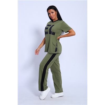 ID товара: 1038176 Состав: 100% Ххлопок Сезон: Весна/Лето Длина: Полная Фасон: Свободный Рукав: короткие Крой брючин: Прямой Рисунок: литеры Тип карманов: С отрезным бочком Декоративные элементы: Лампасы Основная ткань: Хлопок Стиль: Спортивный Вид ткани: Кулирка пенье Страна бренда: Россия Страна производства: Россия Костюм включает в себя легкую футболку с коротким рукавом и брюки с лампасами, выполненные из высококачественного трикотажного хлопка. Модель идеально подходит для женщин различных размеров, включая большие и полные, что делает ее отличным вариантом для девушек и мам, Комментарии к товару