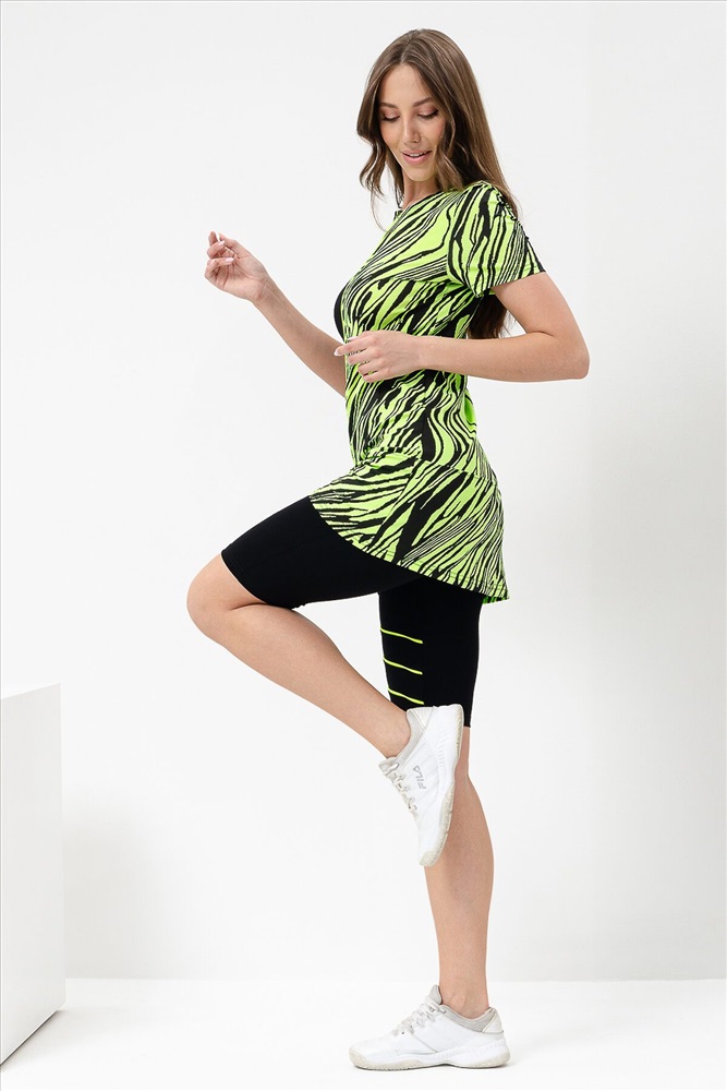 ID товара: 900488 Состав: Вискоза 92%, Лайкра 8%; Хлопок 95%, Лайкра 5% Сезон: Весна/Лето Длина: Средняя Фасон: Полуприлегающий Рукав: короткие Крой брючин: Облегающий Рисунок: Абстракция Декоративные элементы: Принт Основная ткань: Полиэстер Стиль: Спортивный Вид ткани: Кулирка с лайкрой, вискоза пенье Страна бренда: Россия Страна производства: Россия Костюм женский состоит из туники и велосипедок, туника полуприлегающего силуэта с принтом на полочке с коротким втачным рукавом, велосипедки с широкой эластичной резинкой на поясе с ярким кантом на передней половинке. Комментарии к товару