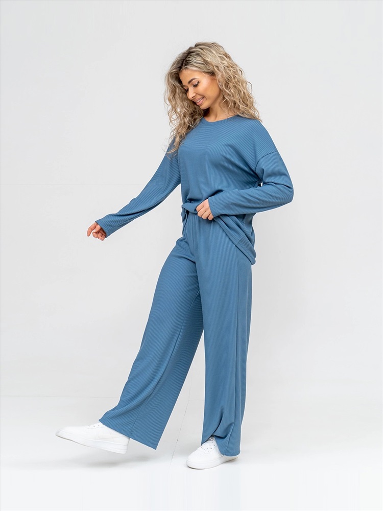 Состав: 60% вискоза; 35% полиэстер; 5% cпандекс Цвет: синий Молодежный костюм из трикотажной лапши. Толстовка "oversize" со спущенной линией плеча, длинным рукавом и О-образной горловиной. Широкие брюки на резинке с высокой посадкой. Комментарии к товару
