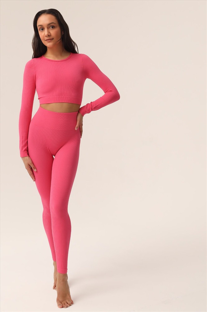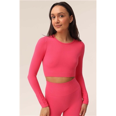 Кроп-топ с длинным рукавом, выполнен из мягкой фактурной микрофибры в рубчик.