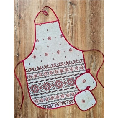 Название: Вышиванка-сер. Ткань: рогожка Состав: хлопок 100% Комплектация: 3 пр. Набор кухонный "Вышиванка"-сер.- 3 пр. : фартук-1 шт. прихватка - 2 шт. Ткань: рогожка Состав: хлопок 100% Рогожка - очень прочная хлопчатобумажная ткань. В результате особого переплетения нитей двойного и даже тройного, образуется уникальный рисунок напоминающий шахматную доску. Комментарии к товару