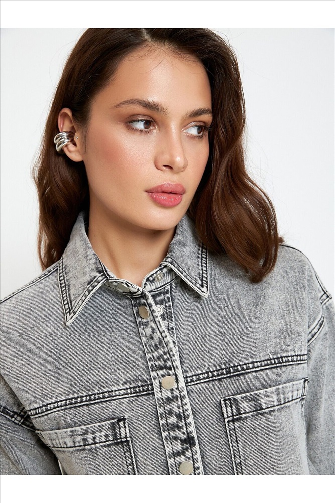 ID товара: 1003595 Состав: 89% Хлопок, 6% Полиэстер, 5% Вискоза Сезон: Весна/Лето Длина: Средняя Фасон: Свободный крой Рукав: длинные Вид застежки: Кнопки Вырез горловины: Отложной воротничок Тип карманов: Накладные Основная ткань: Хлопок Стиль: Повседневный Страна бренда: Россия Страна производства: Китай Женская джинсовая куртка в стильном оттенке представляет собой модель прямого силуэта, создающего элегантный образ. Её длина до бедра и фигурная линия низа обеспечивают комфорт в носке и придают куртке современный вид. Застежка на планку с кнопками делает её удобной в использовании. Куртка оборудована накладными карманами спереди, что придает ей практичность и стиль. На спинке расположена силуэтообразующая кокетка. Приспущенная линия плеча позволяет сочетать куртку с футболками или худи кроя оверсайз для создания ультрамодного многослойного образа. Длинные рукава с манжетами на кнопках. Горловина обработана стояче-отложным воротником, что добавляет куртке элегантности. Еще одним стильным решением является легкий wash-эффект, который оживляет общий образ. Куртка доступна в двух модных цветах: фуксии и сером, что позволяет выбрать оптимальный вариант для вашего стиля и предпочтений. Комментарии к товару