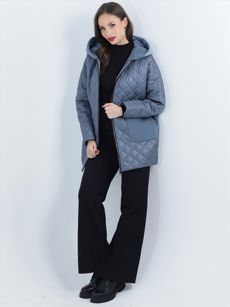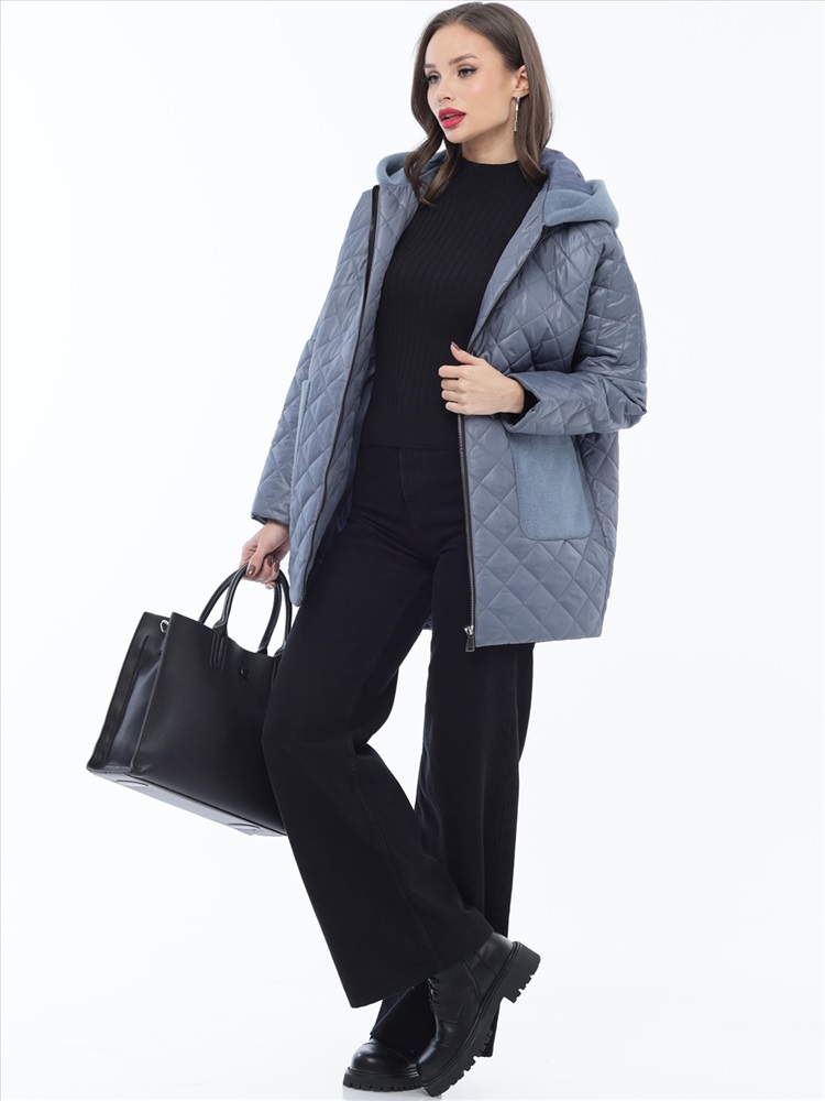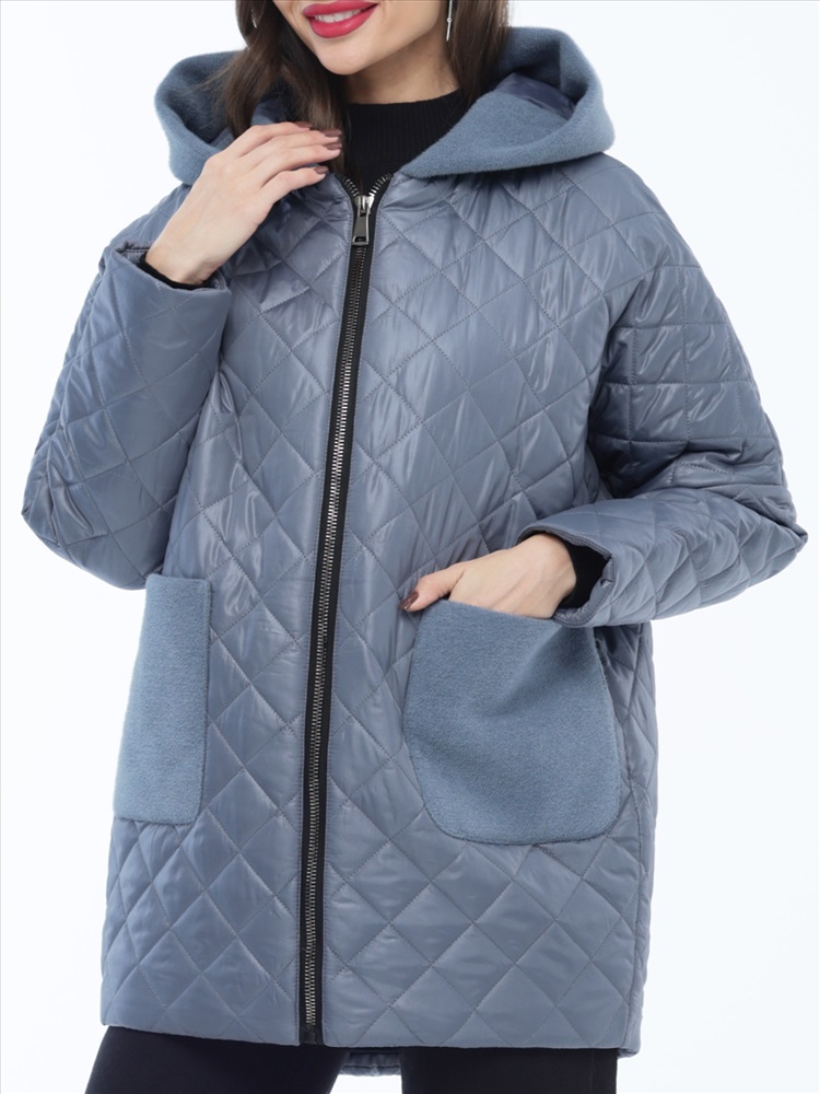Декоративные элементы: Накладные карманы Вид застёжки: Молния Вырез горловины: Капюшон Длина изделия по спинке: 75 Назначение: Повседневная Тип рукава: Длинный Фактура материала: Текстильный Состав: 98% полиэстер, 2% эластан Тип ткани: плащевая Цвет: Серо-голубой Комбинированная куртка с капюшоном — идеальный демисезонный вариант, который поможет создать стильный и комфортный образ. Модель прямого фасона с удобной застежкой на молнию будет прекрасно смотреться на женщинах любой комплекции. Изюминка модели — накладные карманы и вставка на капюшоне из мягкого плюшевого материала. Эти детали освежают образ, делают его более нежным, уютным и стильным. Основная часть куртки выполнена из стеганой плащевой ткани, которая не промокает, защищает от ветра и дарит ощущение тепла. Модель пастельного оттенка легко впишется в гардероб и станет главным акцентом модного элегантного образа. Рекомендуется сдавать куртку в химчистку или стирать в бережном режиме при температуре до 30 градусов без отжима. Небольшие загрязнения достаточно удалить влажной губкой с моющим средством. Длина 44 размер - 75 см 46 размер - 75 см 48 размер - 76 см 50 размер - 76 см 52 размер - 77 см 54 размер - 77 см 56 размер - 78 см Цвет изделия на фотографии может отличаться от фактического товара, что связано с искажением цветопередачи монитором, настройками фотоаппаратуры и прочими факторами Пропорции