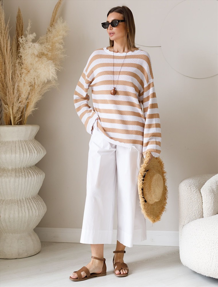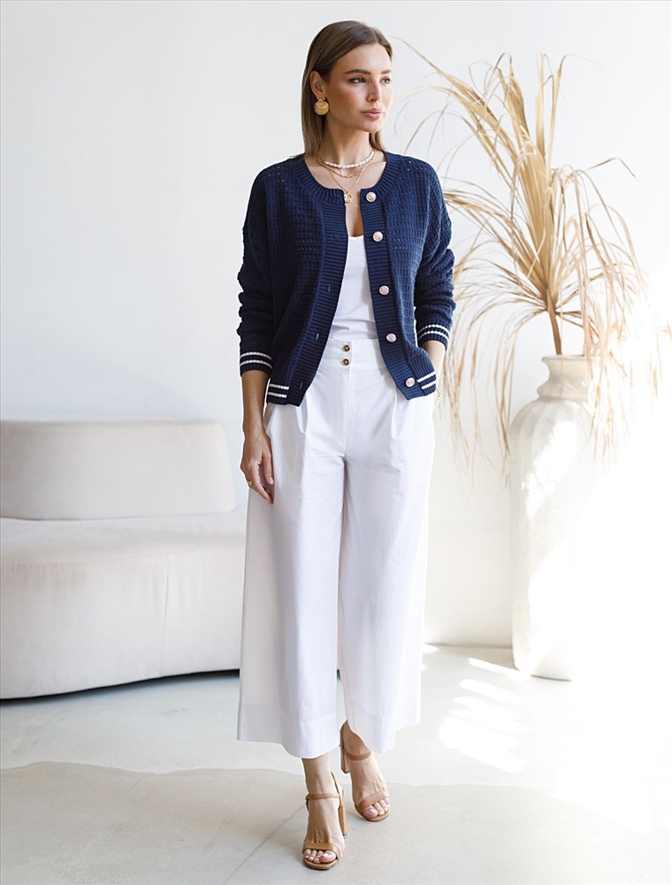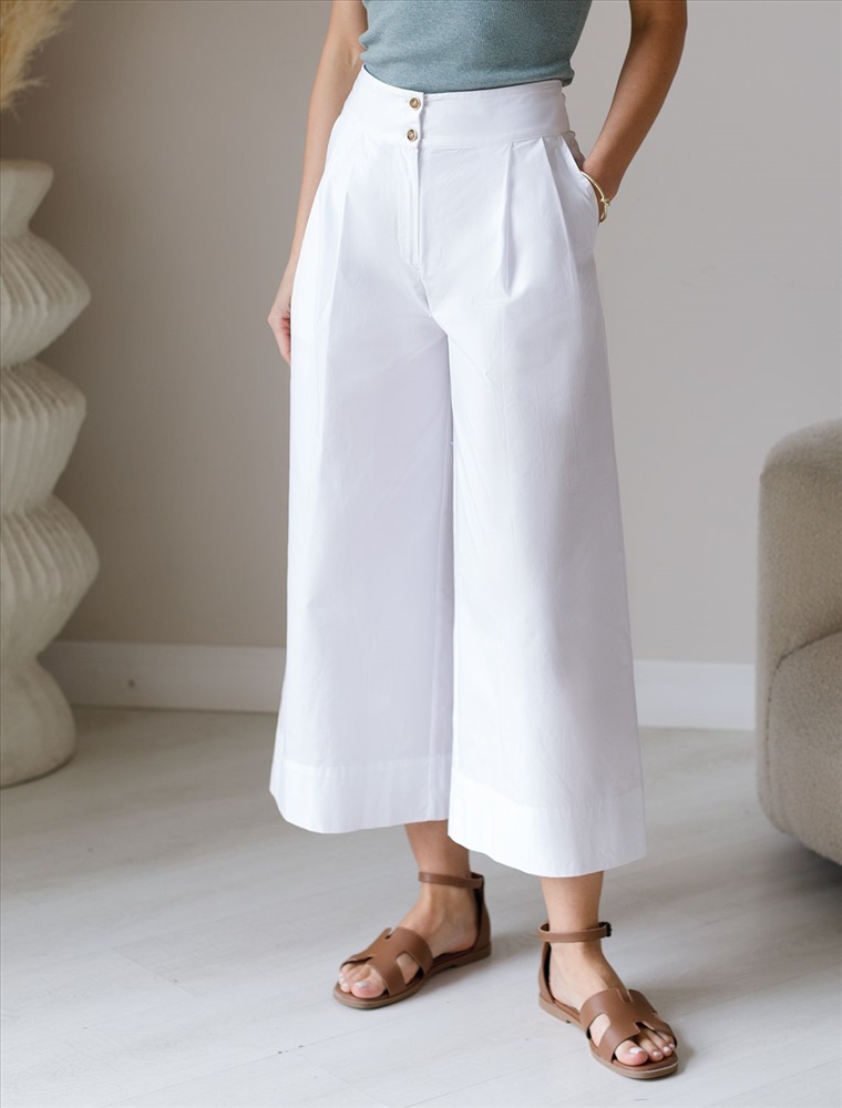Параметры модели на первом фото: Рост 170, бюст 89, талия 63, бедра 92 Размер товара на первом фото: 42 Кюлоты А-силуэта выполнены из легкого хлопкового поплина. Модель с карманами и средней посадкой. Натуральный состав ткани обладает высокой воздухопроницаемостью и гигроскопичностью. В изделии будет комфортно, даже в самое жаркое время года. Подходит для любой фигуры. Сочетается в костюме с блузкой D29.247 и D29.264. Комментарии к товару
