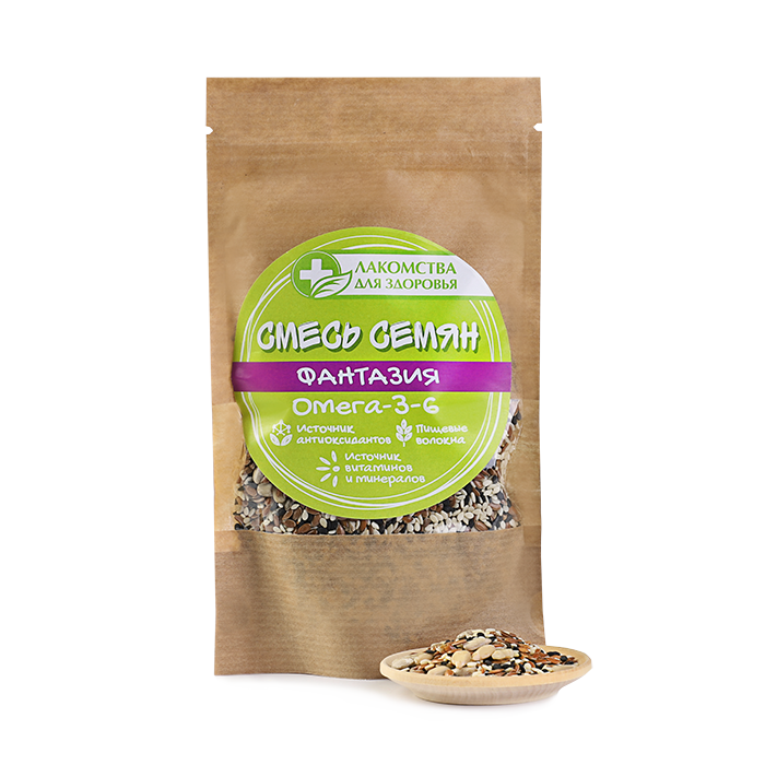 Состав: семена льна, кунжута белого, кунжута черного, подсолнуха. Семена растений – это растительный энергетик, сбалансированный продукт, содержащий большое количество белка и клетчатки, полезные растительные жиры, включая Омега-кислоты, витамины, макро-и микроэлементы. Они используются в качестве вкусной и ценной добавки при приготовлении всевозможных блюд. Смесь семян – важная составляющая пищевого рациона спортсменов, вегетарианцев, людей ведущих активную физическую и умственную деятельность, а так же для всех кто заботиться о своем здоровье. Семена льна, кунжута, тыквы, подсолнха природный источник: - Омега 3 и Омега 6 - Клетчатки - Растительного белка - Витаминов и минеральных веществ - Антиоксидантов Комментарии к товару