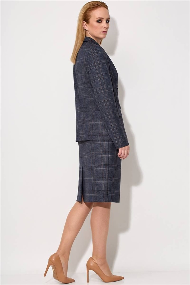 Страна производитель: Республика Беларусь Комплектация: Юбка, Жакет Сезон: Демисезон Коллекция: Осень-Зима, Осень 2022 Стиль: Деловой, На каждый день Цвет: синий-в-клетку Материал: текстиль Рост: 164 см Состав: 62% ПЭ, 32% вискоза, 6% эластан Описание: Костюм женский состоящий из жакета и юбки. Жакет полуприлегающего силуэта на подкладке. По переду отрезной бочок, прорезные функциональные карманы в рамку с клапаном. Спинка со средним швом. Воротник пиджачного типа с двухбортной застежкой на 4 пуговицы. Рукав втачной, длинный, двухшовный. Комментарии к товару