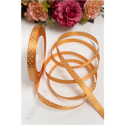 Лента атласная в горошек 1 см*25 ярд (SF-1367) оранжевый №024