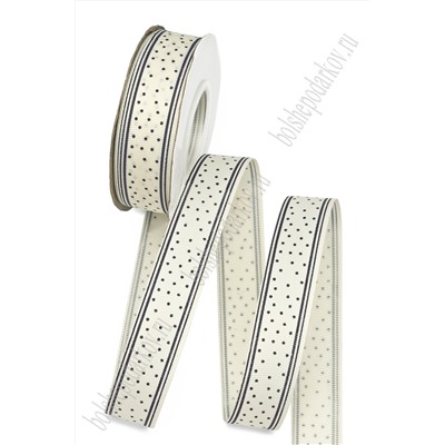 Лента репсовая 2,5 см*20 ярд "Горошек с полосками" SF-1296, кремовый №8