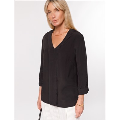 Летящая блузка выполнена из премиальной вискозы и лиоцелла. Лаконичная модель с полуматовым блеском украшена мягким воланом. Приятная на ощупь ткань охлаждает кожу в жаркую погоду. Отлично впишется в нестрогий офисный дресс-код или в расслабленном повседневном образе с джинсами и юбками.