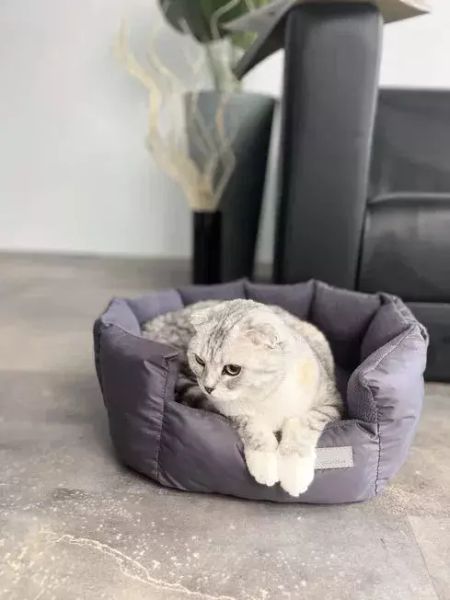 Круглая лежанка для кошек со съемным матрасом.