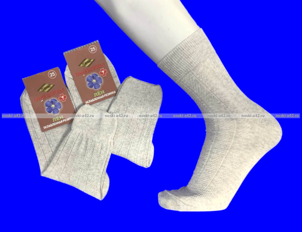 Медицинские носки мужские лён с ослабленной резинкой оптом - в упаковке 10 пар одного размера.