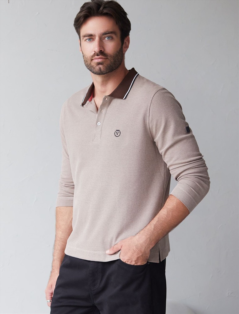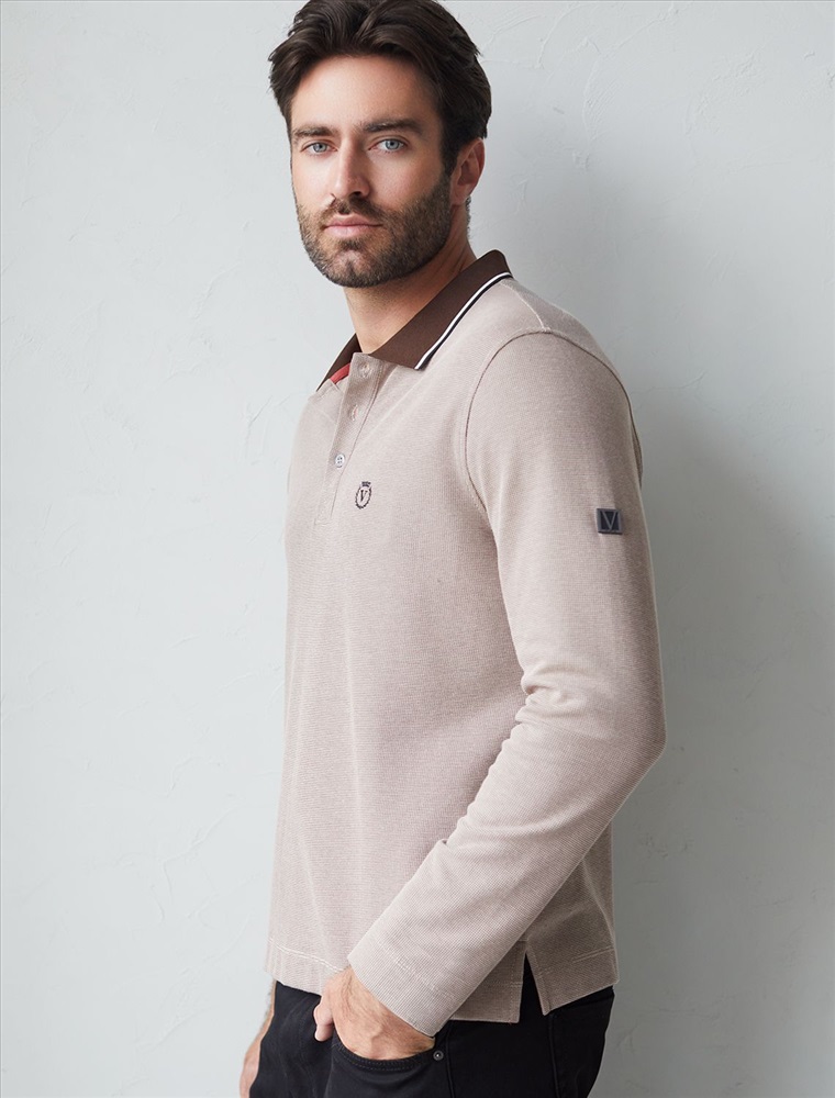 Плотность: 170 Г/м2 Стильный лонгслив коричневого цвета с плетеным воротником поло с застежкой на пуговицы выполнен из премиального хлопка в сочетании с эластаном .Невероятно мягкая ткань из натуральных волокон - она едва ощутима на коже и словно обнимает тело. Материал при касании кажется бархатистым, при движении он словно повторяет все мельчайшие линии фигуры. По свойствам материал сочетает в себе практичность и нежность: отлично провускает воздух, сохраняя ощущение свежести в течение всего дня, при этом созраняет тепло в прохладную погоду.Идеально подходит для чувствительной кожи, не вызывает раздражения и дискомфорта. Удобный отложной воротник делает образ современным и стильным, а длинные рукава с манжетами защищают руки при ветреной погоде. Поло хорошо садится по фигуре благодаря добавлению эластичных волокон — такой вариант подходит для мужчин любого роста и размеров, не стесняет движений и создает ощущение свободы и легкости. Повседневный лонгслив дополнен ненавязчивой вышивкой на груди в виде логотипа бренда в тон основному цвету, которая придает образу индивидуальность, не перегружая его лишними акцентами. Лаконичная вышивка служит оригинальным декоративным элементом, гармонично вписываясь в общий минималистичный облик. Такой подход делает лонг универсальным решением для тех, кто ценит простоту и стремится подчеркнуть свой вкус через детали. На рукаве нашивка из эко-кожи с логотипом бренда, по бокам небольшие разрезы - дополняют современный дизайн лонгслива. Легкий джемпер идеально комбинируется как с классическими брюками, так и с джинсами или шортами — универсальность этой модели оценит каждый мужчина, предпочитающий удобную одежду для активного дня. Легкий и дышащий материал делает повседневный лонгслив практичным для ношения в переменчивую осеннюю погоду, когда температура еще не слишком низкая, но уже ощущается прохлада. Комментарии к товару