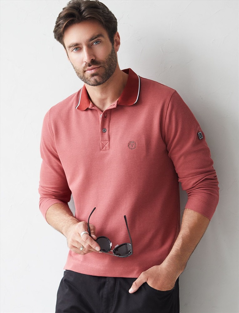 Плотность: 170 Г/м2 Стильный лонгслив кирпичного цвета с плетеным воротником поло с застежкой на пуговицы выполнен из премиального хлопка в сочетании с эластаном .Невероятно мягкая ткань из натуральных волокон - она едва ощутима на коже и словно обнимает тело. Материал при касании кажется бархатистым, при движении он словно повторяет все мельчайшие линии фигуры. По свойствам материал сочетает в себе практичность и нежность: отлично провускает воздух, сохраняя ощущение свежести в течение всего дня, при этом созраняет тепло в прохладную погоду.Идеально подходит для чувствительной кожи, не вызывает раздражения и дискомфорта. Удобный отложной воротник делает образ современным и стильным, а длинные рукава с манжетами защищают руки при ветреной погоде. Поло хорошо садится по фигуре благодаря добавлению эластичных волокон — такой вариант подходит для мужчин любого роста и размеров, не стесняет движений и создает ощущение свободы и легкости. Повседневный лонгслив дополнен ненавязчивой вышивкой на груди в виде логотипа бренда в тон основному цвету, которая придает образу индивидуальность, не перегружая его лишними акцентами. Лаконичная вышивка служит оригинальным декоративным элементом, гармонично вписываясь в общий минималистичный облик. Такой подход делает лонг универсальным решением для тех, кто ценит простоту и стремится подчеркнуть свой вкус через детали. На рукаве нашивка из эко-кожи с логотипом бренда, по бокам небольшие разрезы - дополняют современный дизайн лонгслива. Легкий джемпер идеально комбинируется как с классическими брюками, так и с джинсами или шортами — универсальность этой модели оценит каждый мужчина, предпочитающий удобную одежду для активного дня. Легкий и дышащий материал делает повседневный лонгслив практичным для ношения в переменчивую осеннюю погоду, когда температура еще не слишком низкая, но уже ощущается прохлада. Комментарии к товару