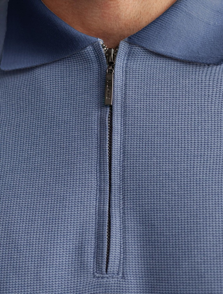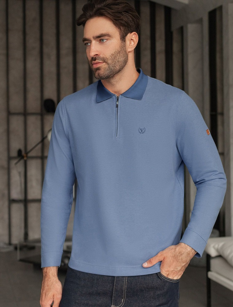 Плотность: 170 Г/м2 Стильный лонгслив светло-синего цвета с плетеным воротником поло с застежкой на молнию выполнен из премиального хлопка в сочетании с эластаном .Невероятно мягкая ткань из натуральных волокон - она едва ощутима на коже и словно обнимает тело. Материал при касании кажется бархатистым, при движении он словно повторяет все мельчайшие линии фигуры. По свойствам материал сочетает в себе практичность и нежность: отлично провускает воздух, сохраняя ощущение свежести в течение всего дня, при этом созраняет тепло в прохладную погоду.Идеально подходит для чувствительной кожи, не вызывает раздражения и дискомфорта. Удобный отложной воротник делает образ современным и стильным, а длинные рукава с манжетами защищают руки при ветреной погоде. Поло хорошо садится по фигуре благодаря добавлению эластичных волокон — такой вариант подходит для мужчин любого роста и размеров, не стесняет движений и создает ощущение свободы и легкости. Лонгслив с молнией дополнен ненавязчивой вышивкой на груди в виде логотипа бренда в тон основному цвету, которая придает образу индивидуальность, не перегружая его лишними акцентами. Лаконичная вышивка служит оригинальным декоративным элементом, гармонично вписываясь в общий минималистичный облик. Такой подход делает лонг универсальным решением для тех, кто ценит простоту и стремится подчеркнуть свой вкус через детали. На рукаве нашивка из эко-кожи с логотипом бренда, по бокам небольшие разрезы - дополняют современный дизайн лонгслива. Легкий джемпер идеально комбинируется как с классическими брюками, так и с джинсами или шортами — универсальность этой модели оценит каждый мужчина, предпочитающий удобную одежду для активного дня. Легкий и дышащий материал делает повседневный лонгслив практичным для ношения в переменчивую осеннюю погоду, когда температура еще не слишком низкая, но уже ощущается прохлада. Комментарии к товару