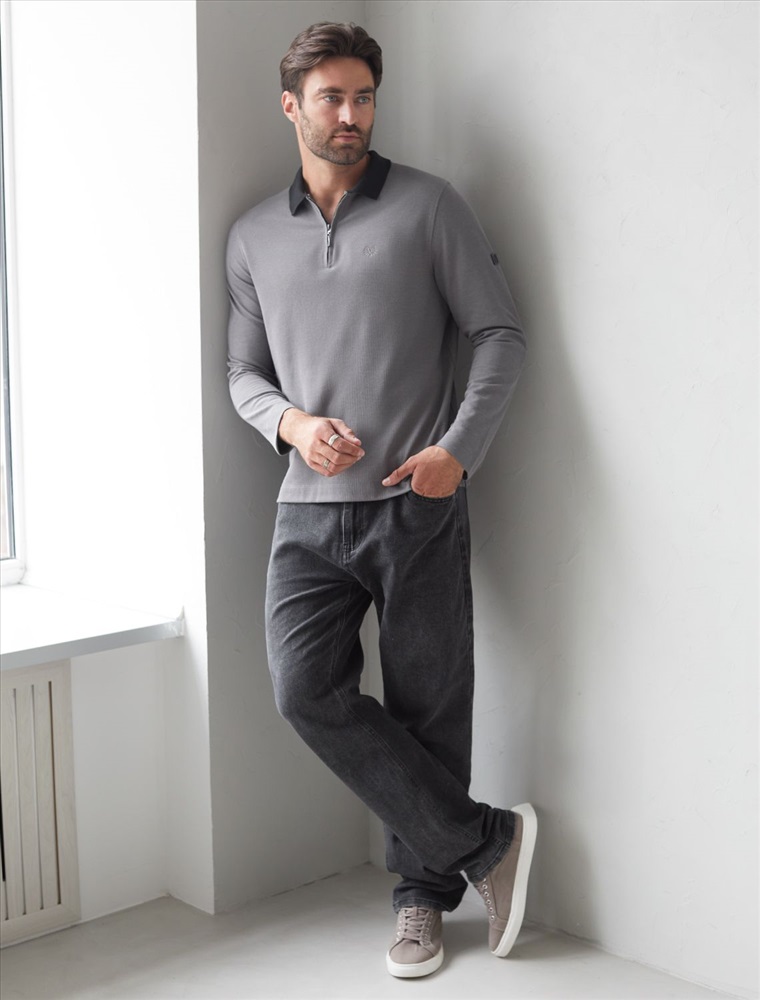 Плотность: 170 Г/м2 Стильный лонгслив темно-серого цвета с плетеным воротником поло с застежкой на молнию выполнен из премиального хлопка в сочетании с эластаном .Невероятно мягкая ткань из натуральных волокон - она едва ощутима на коже и словно обнимает тело. Материал при касании кажется бархатистым, при движении он словно повторяет все мельчайшие линии фигуры. По свойствам материал сочетает в себе практичность и нежность: отлично провускает воздух, сохраняя ощущение свежести в течение всего дня, при этом созраняет тепло в прохладную погоду.Идеально подходит для чувствительной кожи, не вызывает раздражения и дискомфорта. Удобный отложной воротник делает образ современным и стильным, а длинные рукава с манжетами защищают руки при ветреной погоде. Поло хорошо садится по фигуре благодаря добавлению эластичных волокон — такой вариант подходит для мужчин любого роста и размеров, не стесняет движений и создает ощущение свободы и легкости. Лонгслив с молнией дополнен ненавязчивой вышивкой на груди в виде логотипа бренда в тон основному цвету, которая придает образу индивидуальность, не перегружая его лишними акцентами. Лаконичная вышивка служит оригинальным декоративным элементом, гармонично вписываясь в общий минималистичный облик. Такой подход делает лонг универсальным решением для тех, кто ценит простоту и стремится подчеркнуть свой вкус через детали. На рукаве нашивка из эко-кожи с логотипом бренда, по бокам небольшие разрезы - дополняют современный дизайн лонгслива. Легкий джемпер идеально комбинируется как с классическими брюками, так и с джинсами или шортами — универсальность этой модели оценит каждый мужчина, предпочитающий удобную одежду для активного дня. Легкий и дышащий материал делает повседневный лонгслив практичным для ношения в переменчивую осеннюю погоду, когда температура еще не слишком низкая, но уже ощущается прохлада. Комментарии к товару