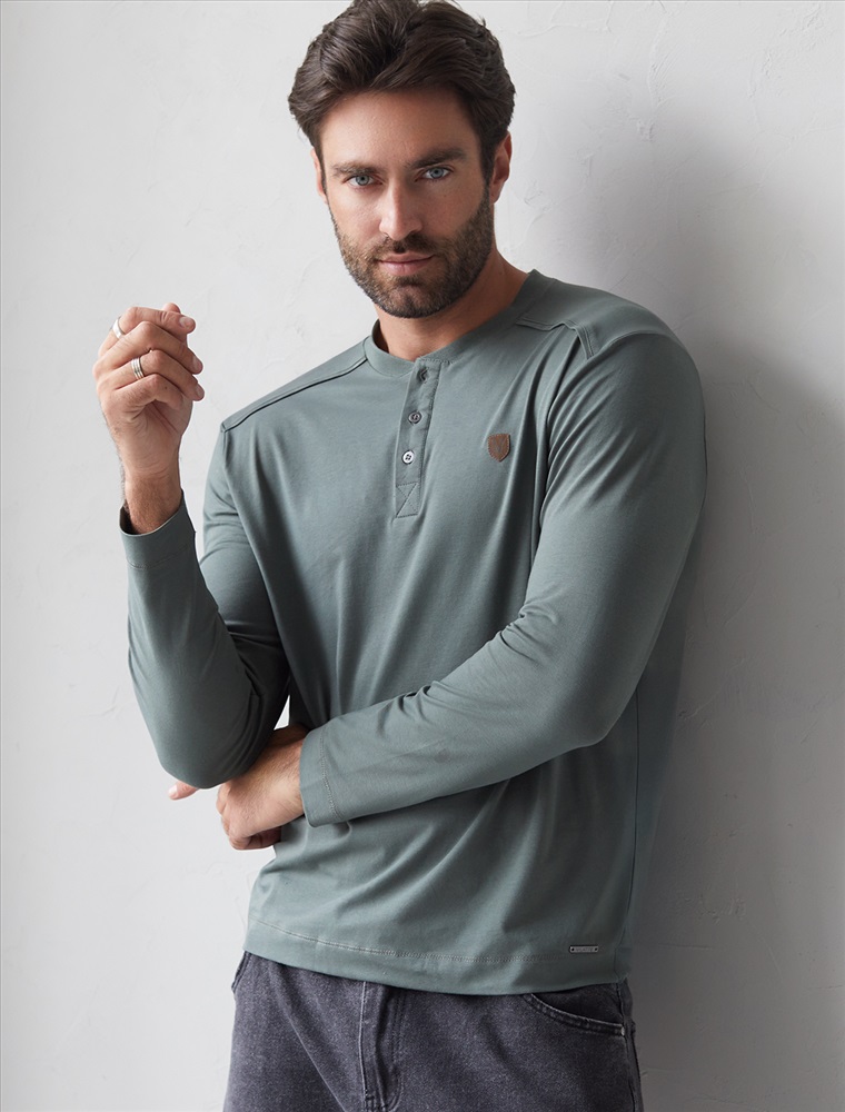 Плотность: 170 Г/м2 Параметры модели на первом фото: Рост 190, бюст 108, талия 87, бедра 104 Размер товара на первом фото: 54 Лонгслив темно-оливкового цвета с длинным рукавом выполнен из премиального хлопка с эластаном, Мягкий материал обеспечивает приятные тактильные ощущения, натуральный состав ткани позволяет коже дышать, удобен в повседневной длительной носке. Благодаря эластичному материалу лонгслив тянется и создает комфортный полуприлегающий силуэт. Подходит для маленьких и больших размеров, не сковывает движения и сохраняет форму после стирки. Облегающий лонг выгодно выделяет линии тела, при этом в нем ощущается свобода движений. Круглый ворот на металлических пуговицах создает стильный образ, который легко впишется в базовый гардероб. Тонкий джемпер дополнен нашивкой из эко кожи с логотипом бренда. Такой повседневный лонгслив подходит для создания многослойных образов в холодное время года, а в межсезонье и теплые дни можно носить как самостоятельный элемент гардероба, легко комбинируется с повседневной и офисной одеждой в стиле casual. Комментарии к товару