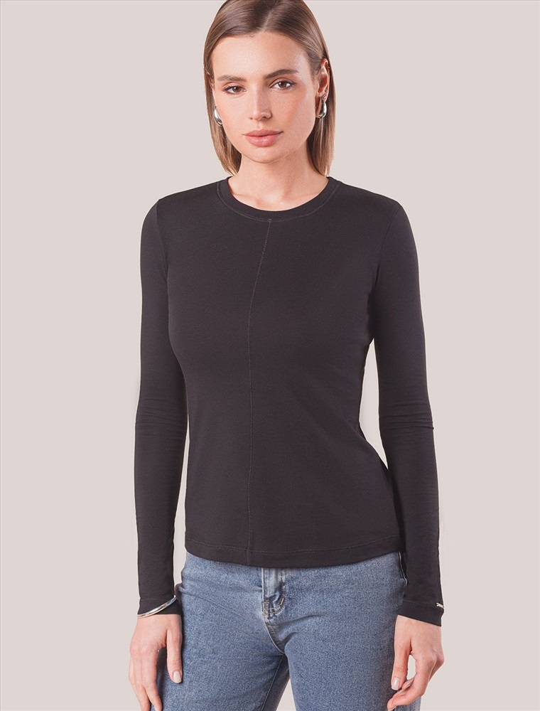 Плотность: 170 Г/м2 Лонгслив выполнен из премиального хлопка с эластаном. Модель прилегающего силуэта идеально сидит по фигуре. Хорошо подойдет первым слоем в многослойные образы. Фишкой изделия служат декоративные швы и фирменный металлический логотип бренда на рукаве.