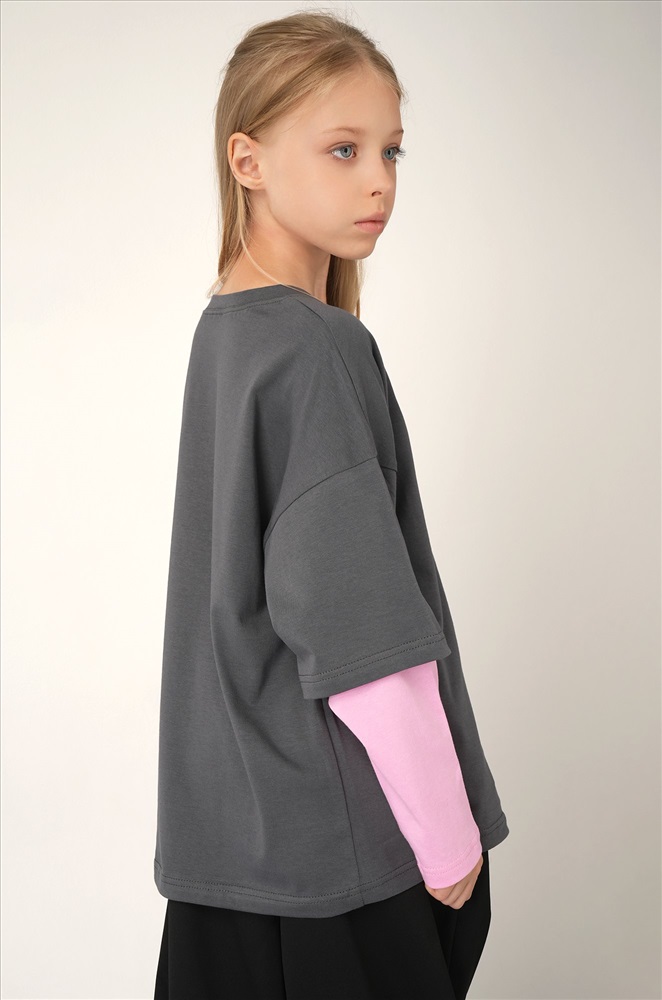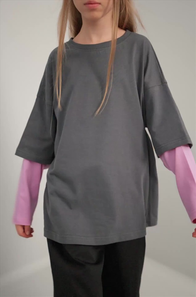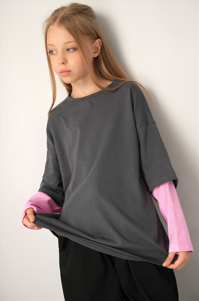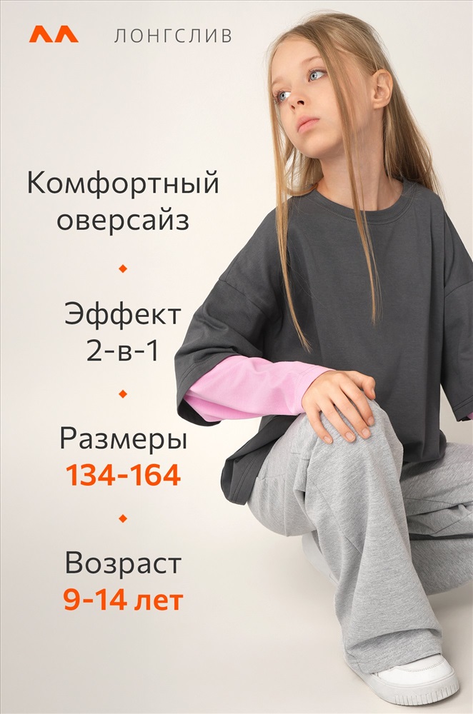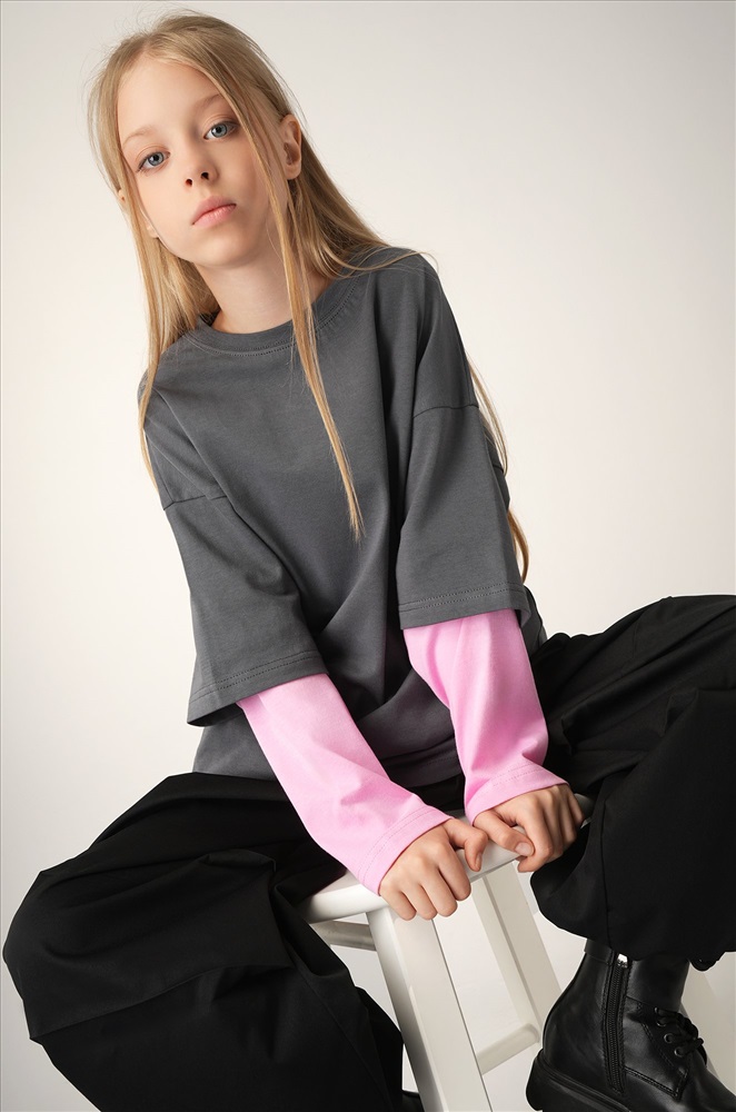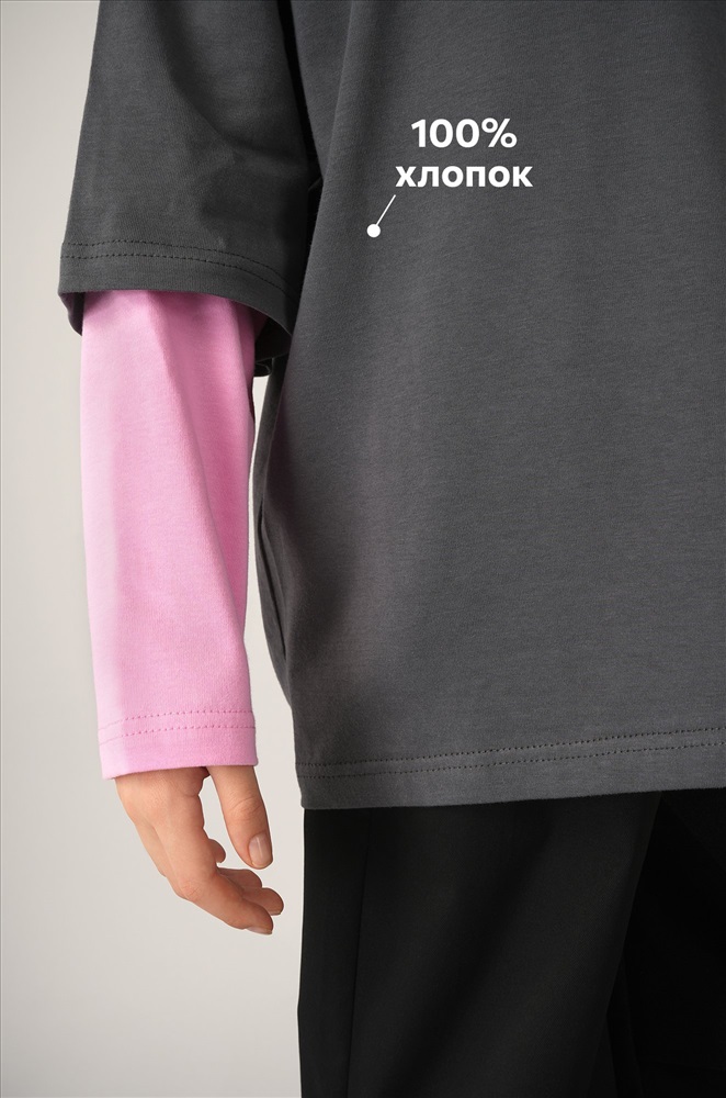 Ультрасовременный и свободный — этот детский лонгслив для девочки подростка точно не останется без внимания. Комбинированная расцветка и эффект двойного рукава добавляют образу яркий акцент и лёгкую дерзость.