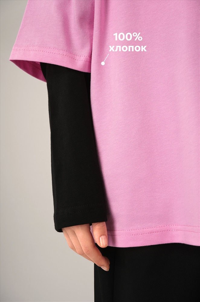 Трикотажный лонг прямого силуэта выполнен из мягкого хлопкового полотна плотностью 180 г/м2. Подходит как для прогулок, так и для школы — лонгслив легко вписывается в подростковый стиль и создаёт современный повседневный образ.