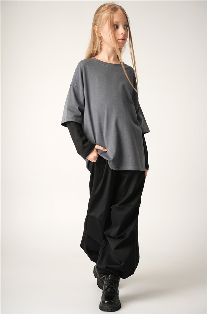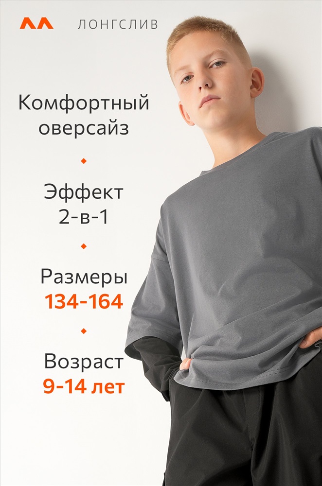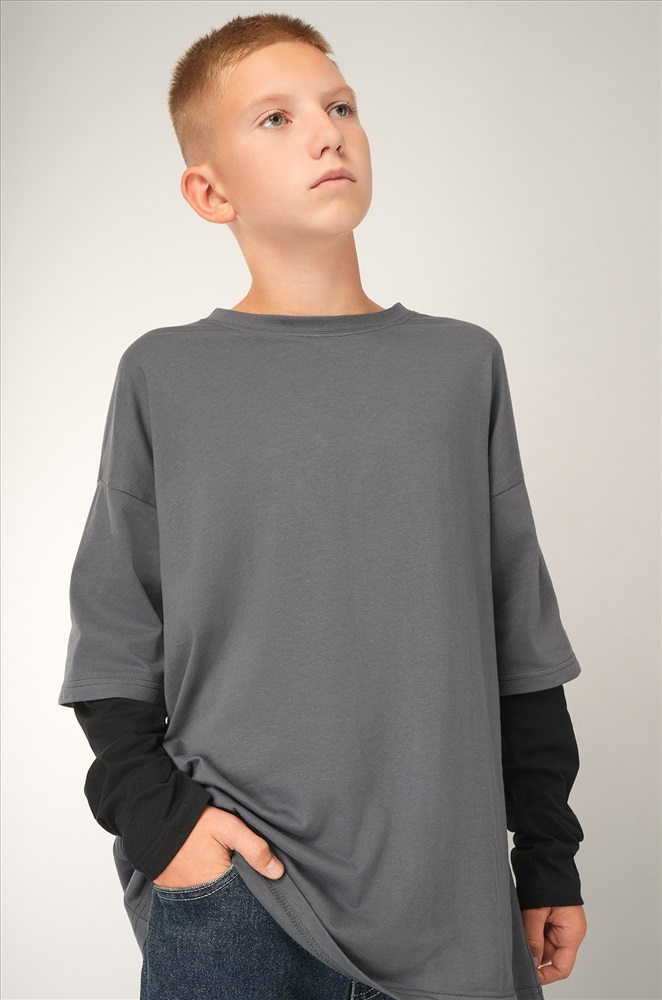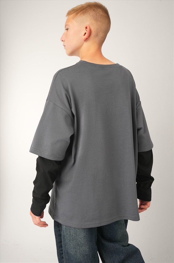 Ультрасовременный и свободный — этот детский лонгслив для подростков точно не останется без внимания. Комбинированная расцветка и эффект двойного рукава добавляют образу стильный акцент и лёгкую дерзость.