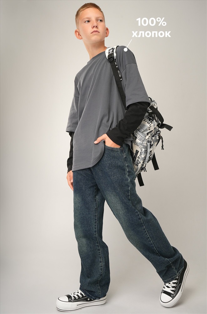 Трикотажный лонг прямого силуэта выполнен из мягкого хлопкового полотна плотностью 180 г/м2. Подходит как для прогулок, так и для школы — лонгслив легко вписывается в подростковый стиль и создаёт современный повседневный образ.