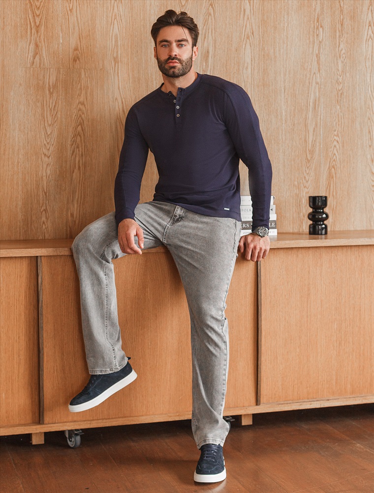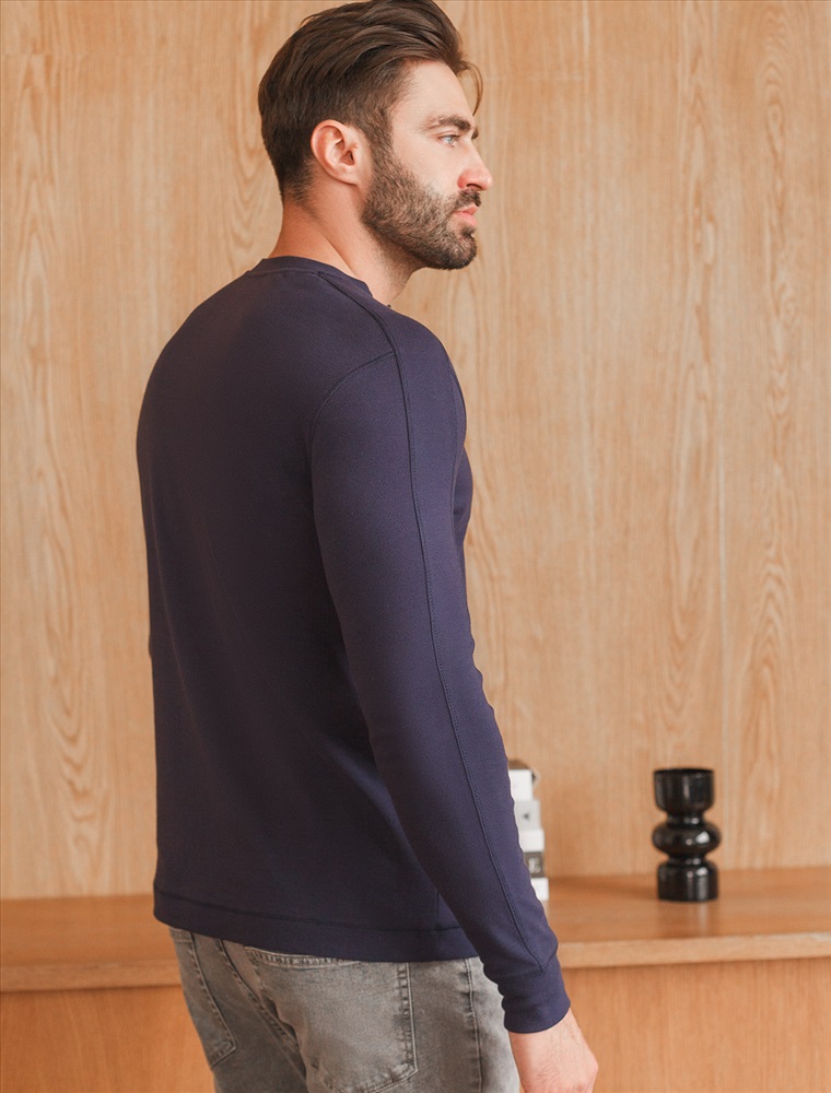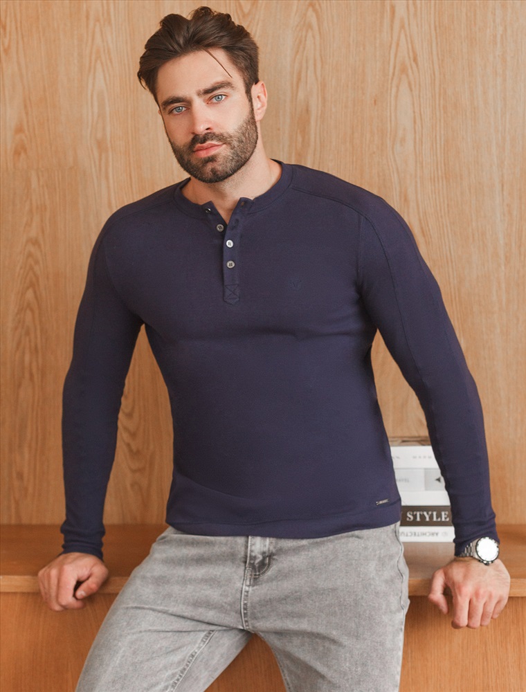 Плотность: 210 Г/м2 Параметры модели на первом фото: Рост 190, бюст 108, талия 87, бедра 104 Размер товара на первом фото: 54 Лонгслив синего цвета выполнен из премиального хлопка с эластаном и идеально подходит для повседневной носки. Круглый ворот с застежкой на металлические пуговицы с логотипом бренда добавляет образу стильный акцент, делая этот лонгслив универсальным выбором как для парней, так и для мужчин любого возраста. Декоративные швы на рукавах и минималистичная вышивка в виде эмблемы VILATTE придают лонгу современный вид и подчеркивают его уникальность. Эластичный хлопковый лонгслив полуприлегающего кроя идеально сидит по фигуре, подчеркивая достоинства телосложения, но не стесняет движений. Натуральный материал этой футболки с длинным рукавом обеспечивает легкость и комфорт даже в жаркое время года. Дышащая ткань способствует циркуляции воздуха, позволяя чувствовать себя удобно и уверенно на протяжении всего дня. Подходит для создания многослойных образов в холодное время года, а в межсезонье и теплые дни можно носить как самостоятельный элемент гардероба, легко комбинируется с повседневной и офисной одеждой в стиле casual. Комментарии к товару