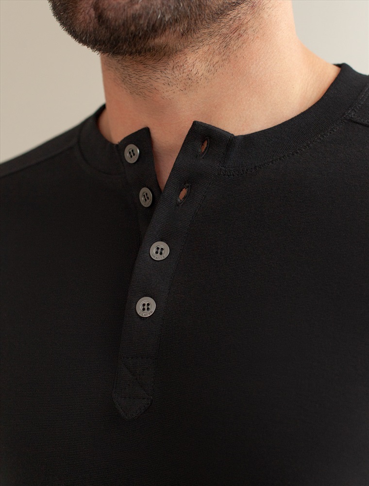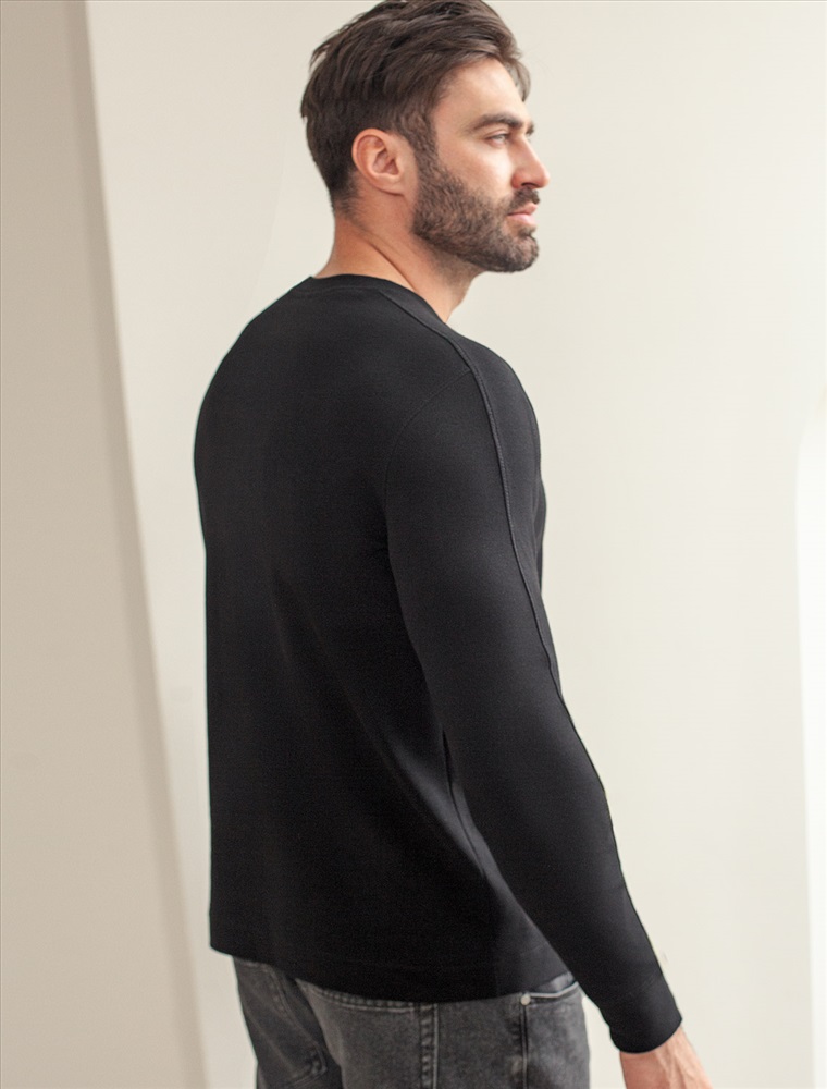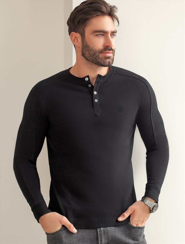Плотность: 210 Г/м2 Параметры модели на первом фото: Рост 190, бюст 108, талия 87, бедра 104 Размер товара на первом фото: 54 Лонгслив черного цвета выполнен из премиального хлопка с эластаном и идеально подходит для повседневной носки. Круглый ворот с застежкой на металлические пуговицы с логотипом бренда добавляет образу стильный акцент, делая этот лонгслив универсальным выбором как для парней, так и для мужчин любого возраста. Декоративные швы на рукавах и минималистичная вышивка в виде эмблемы VILATTE придают лонгу современный вид и подчеркивают его уникальность. Эластичный хлопковый лонгслив полуприлегающего кроя идеально сидит по фигуре, подчеркивая достоинства телосложения, но не стесняет движений. Натуральный материал этой футболки с длинным рукавом обеспечивает легкость и комфорт даже в жаркое время года. Дышащая ткань способствует циркуляции воздуха, позволяя чувствовать себя удобно и уверенно на протяжении всего дня. Подходит для создания многослойных образов в холодное время года, а в межсезонье и теплые дни можно носить как самостоятельный элемент гардероба, легко комбинируется с повседневной и офисной одеждой в стиле casual. Комментарии к товару