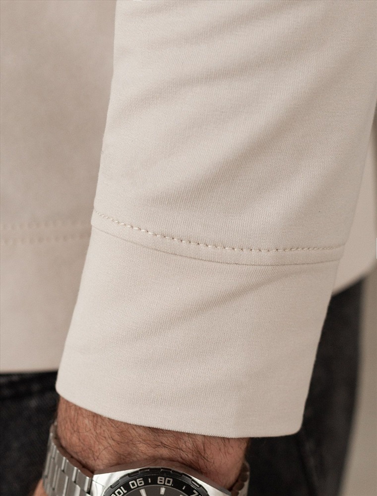 Стильный лонгслив светло-бежевого цвета с воротником поло выполнен из премиального хлопка в сочетании с эластаном . Натуральная ткань обеспечивает легкость, воздухопроницаемость и приятные тактильные ощущения даже когда жарко, позволяет не перегреваться и поддерживает комфортный микроклимат в течение всего дня. Удобный отложной воротник на аккуратных пуговицах делает образ современным и стильным, а длинный рукав защищает руки при ветреной погоде. Поло хорошо садится по фигуре благодаря добавлению эластичных волокон — такой вариант подходит для мужчин любого роста и размеров, не стесняет движений и создает ощущение свободы и легкости.