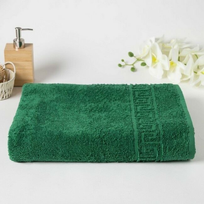 Название: Греческий бордюр-темно-зеленый Ткань: махровая Состав: хлопок 100% Плотность: 430 г/м2 Размер: 70*140 см Комментарии к товару