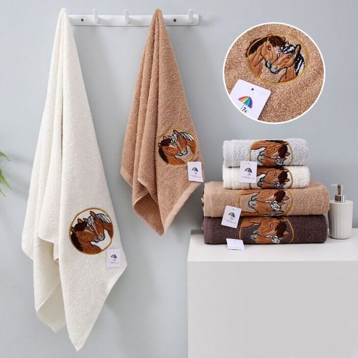 Махровое полотенце "Пара лошадей"- ШОКОЛАД 45*90 см. хлопок 100%