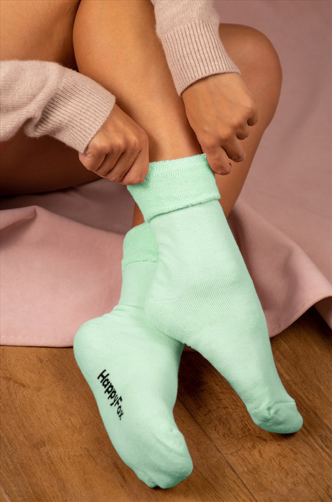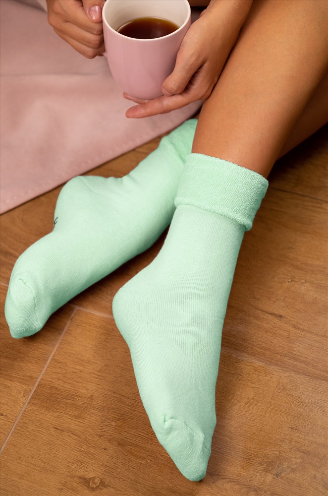 Женские носки с отворотом созданы, чтобы дарить комфорт в прохладные осенние и зимние дни. Махровые носки не просто согреют, но и добавят капельку игривого настроения в любой ненастный день. Трикотажные носки мятного цвета с высоким бортом для женщин выполнены из мягкой пряжи с высоким содержанием хлопка. Хлопковый трикотаж приятный к телу и надежно сохраняет тепло. Однотонные носки с добавлением эластана и нейлона отличаются прочностью и позволяют стопе дышать. Термо носки легко сидят на ноге, не сдавливая, и при этом прекрасно удерживают форму. Теплые и уютные высокие носочки станут верным спутником зимой и холодной осенью, а также в межсезонье. Длинные термоноски светло-зеленого цвета– прекрасный подарок на Новый год. Махровые носки защитят в холода и создадут отличное настроение – купи себе и позаботься о близком! Комментарии к товару