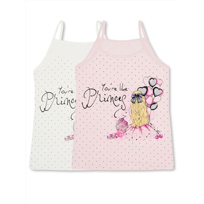 Прекрасная майка для девочки, сшитая из хлопка с добавлением эластана. Модель украшают набивной рисунок с сердечками и чудесный принт.
